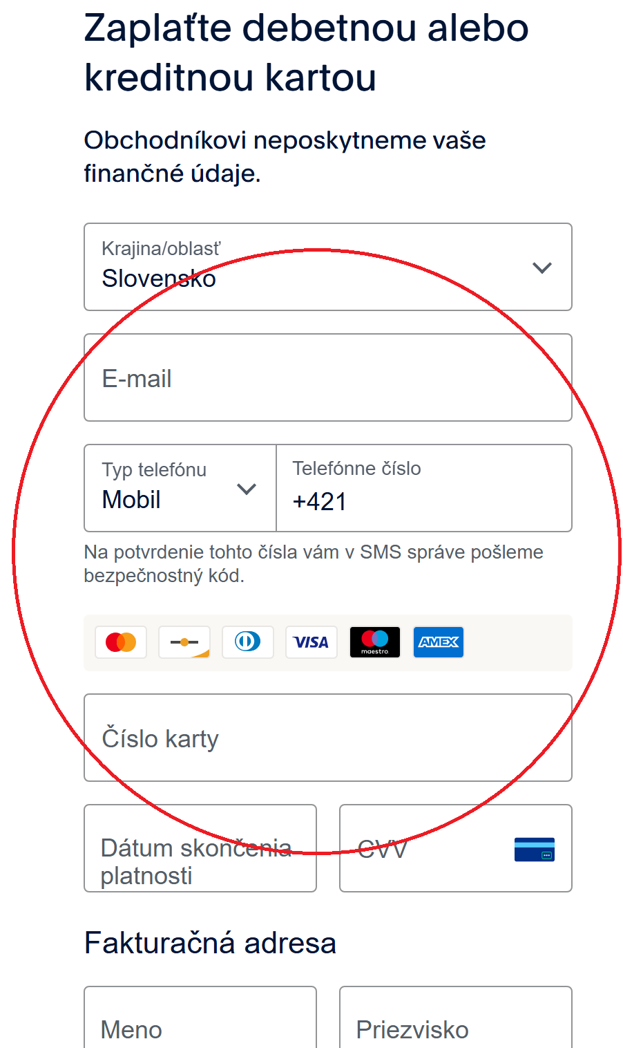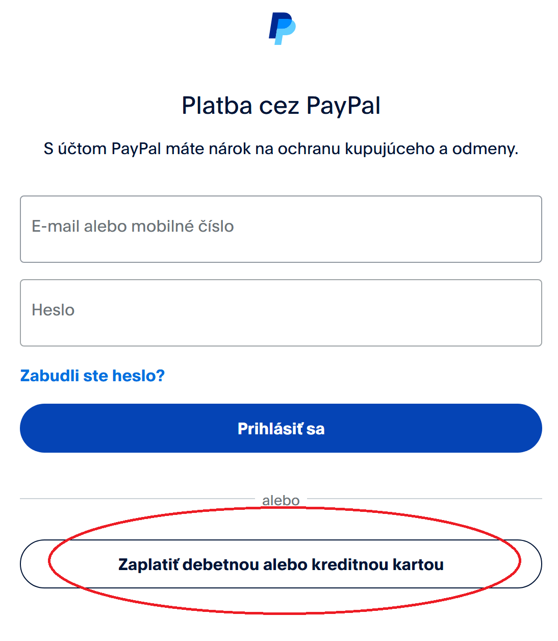 2, Kliknite na tlačidlo "Zaplaťte kreditnou alebo debetnou kartou":