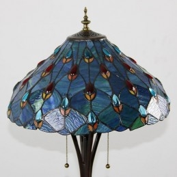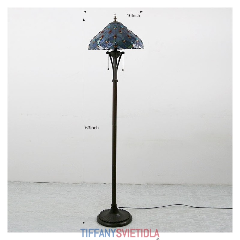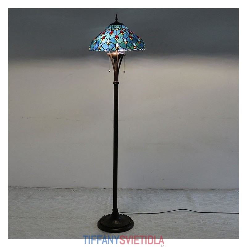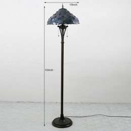 Podlahová lampa z farebného skla v štýle Sea Blue Tiffany so 16 palcovým Es širokým ručne vyrábaným tienidlom na lampu