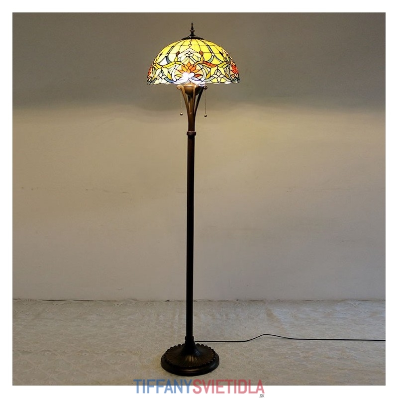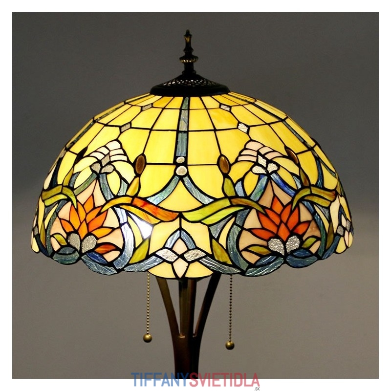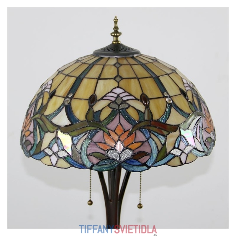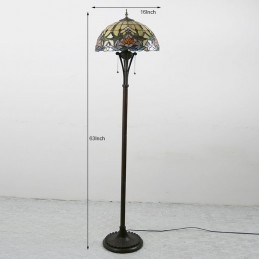 Kvetinová stojaca lampa z farebného skla v štýle Tiffany so 16 palcovým Es širokým ručne vyrobeným tienidlom na lampu