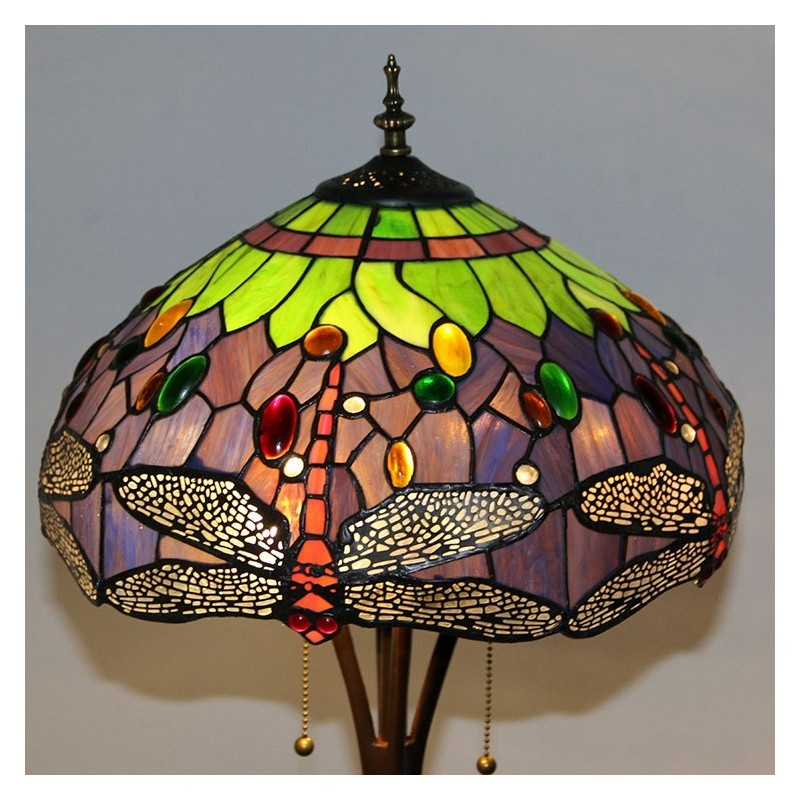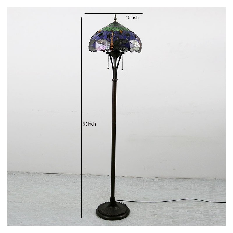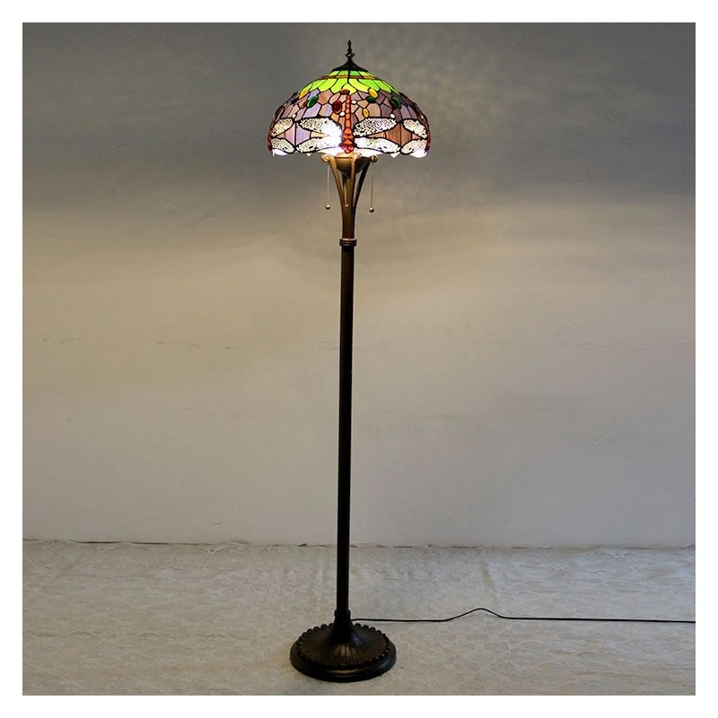 Tiffany stojaca lampa Starožitná stojaca lampa na čítanie 63 palcov vysoká vitrážová červená vážka