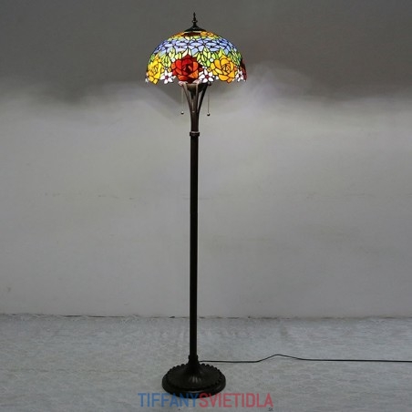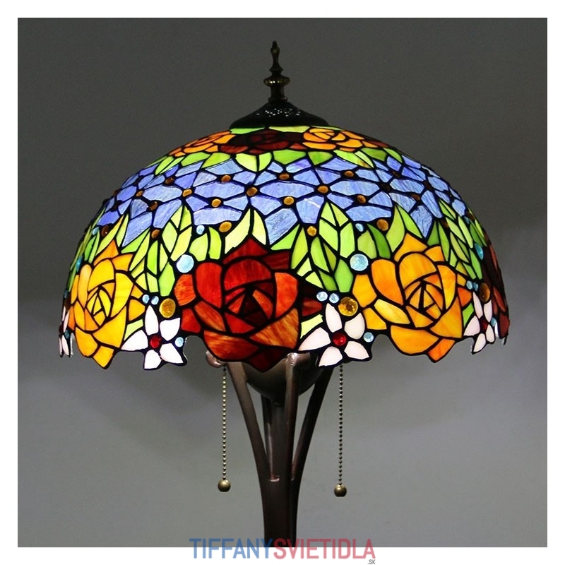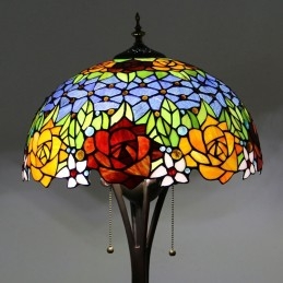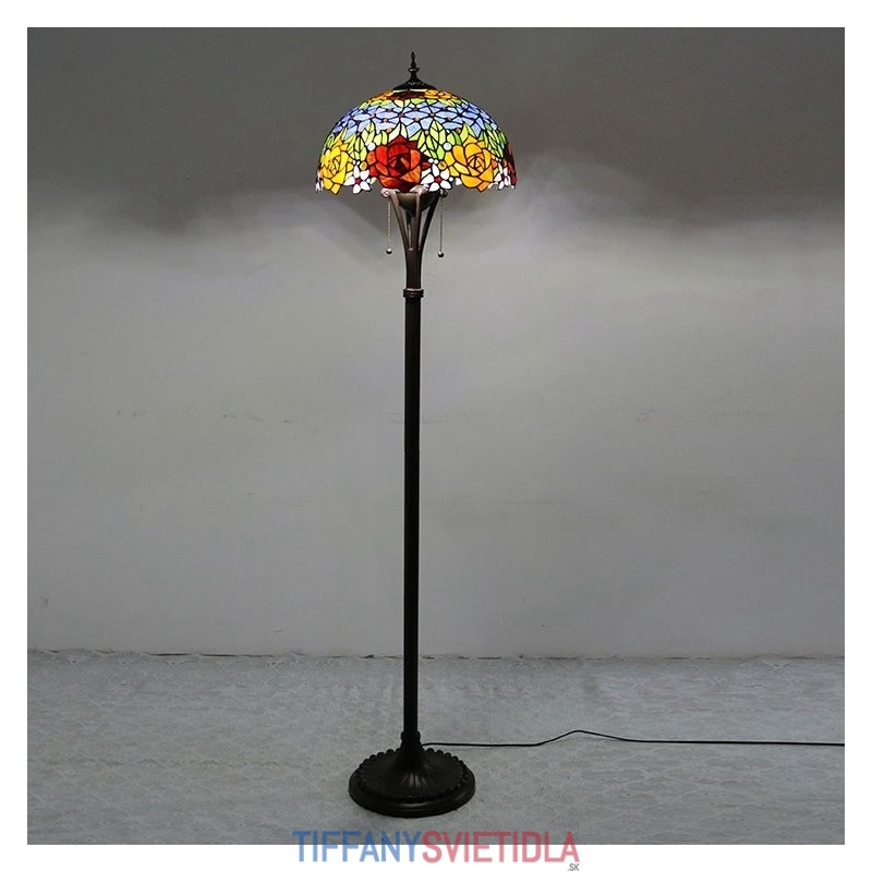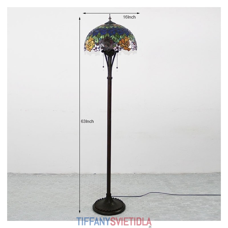 Červenožltý kvet Tiffany Style Farebná sklenená podlahová lampa so 16 palcovou širokou ručne vyrábanou lampou z kovu