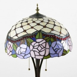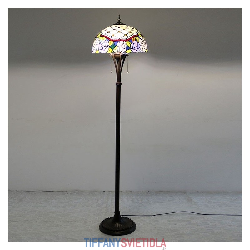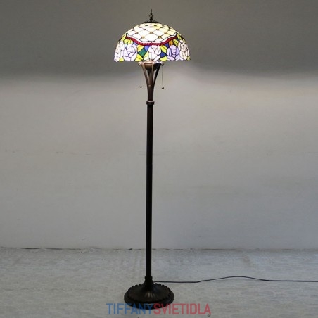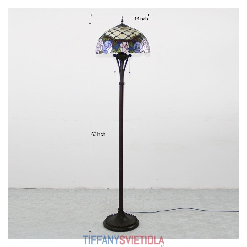 Stojacia lampa z farebného skla v štýle Tiffany so 16-palcovým ručne vyrábaným ružovým kvetinovým lampášovým kovovým podstavcom