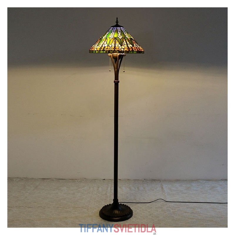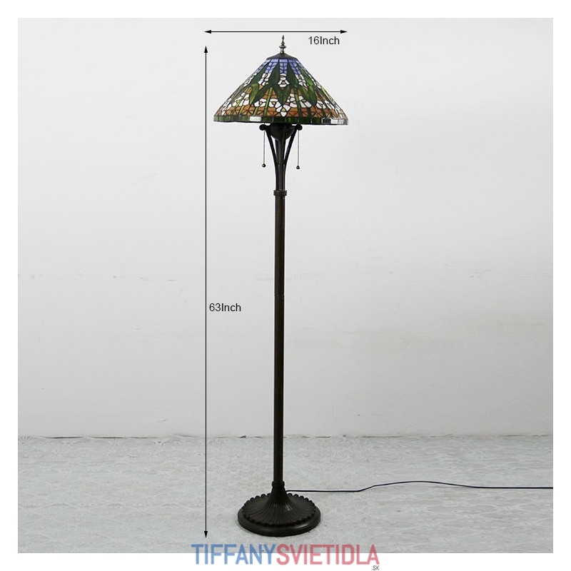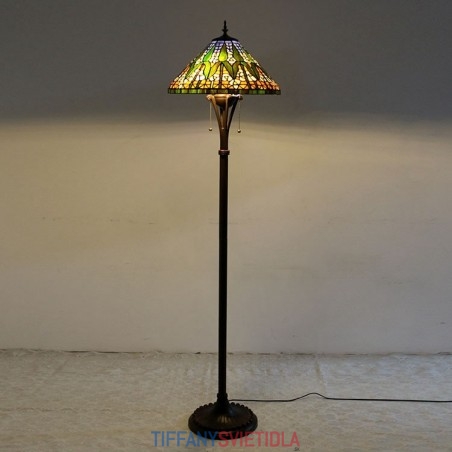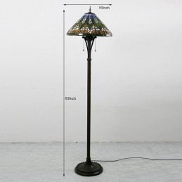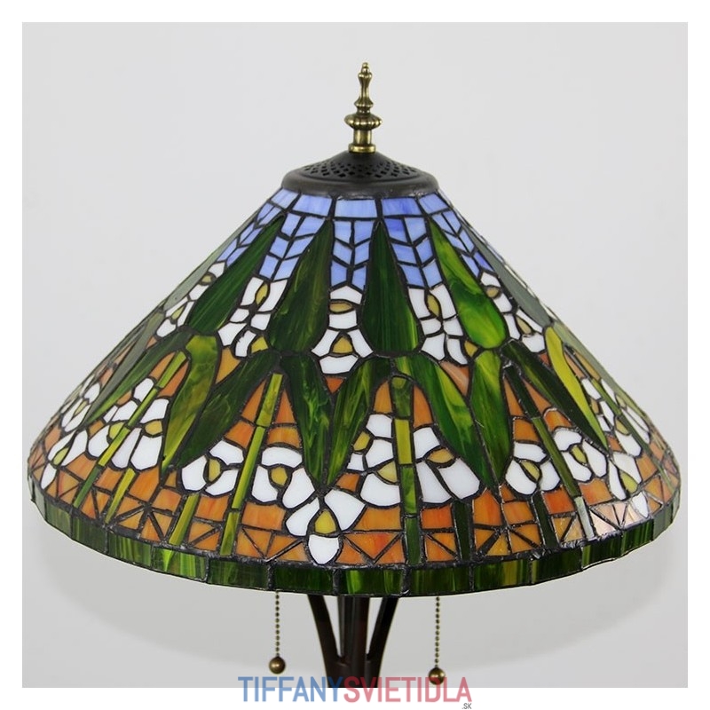 Tiffany stojaca lampa Jasná starožitná stojaca lampa na čítanie 63" vysoký kužeľ z farebného skla Lamphade bambusový dizajn