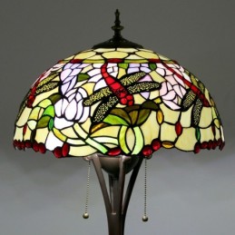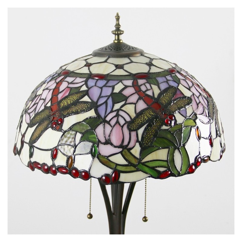 Stojacia lampa z farebného skla v štýle Dragonfly Tiffany so 16-palcovým ručne vyrábaným tienidlom Es s kovovou základňou