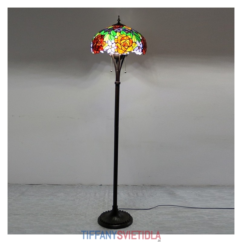 Stojanová stojaca lampa v štýle Tiffany W16H63 palcová vysoká vitrážové sklo Červená ruža odtieň 2 Starožitné osvetlenie na čítanie