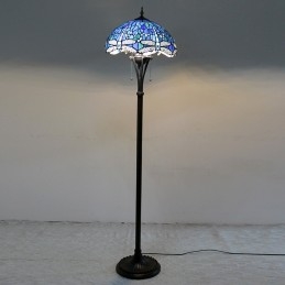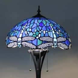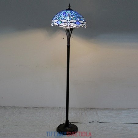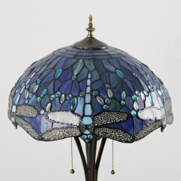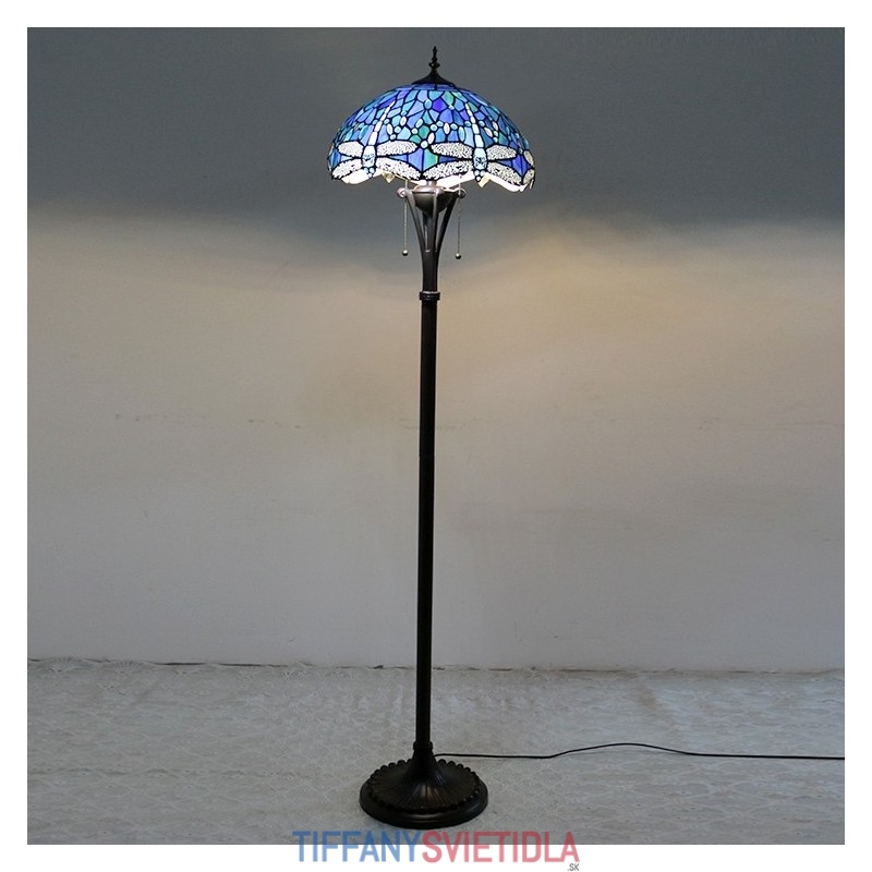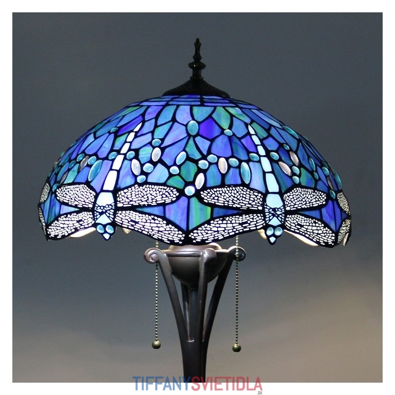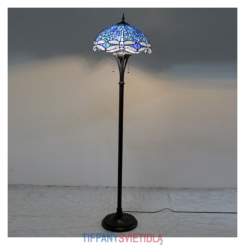 Svetlomodrá stojaca lampa z farebného skla Dragonfly v štýle Tiffany so 16-palcovou širokou ručne vyrábanou kovovou lampou