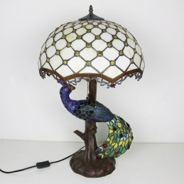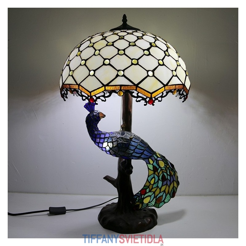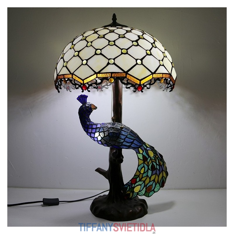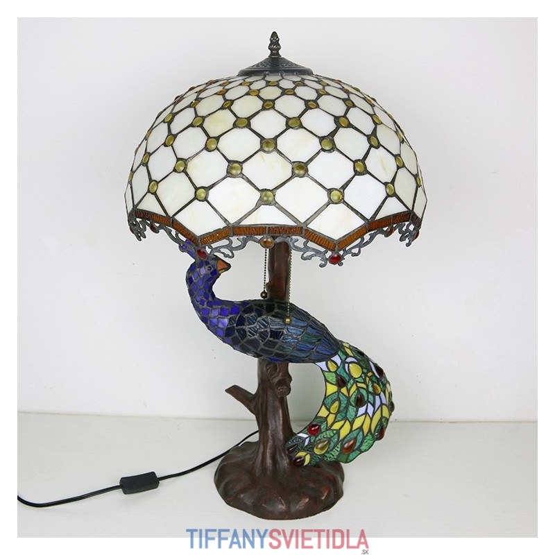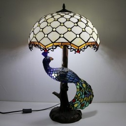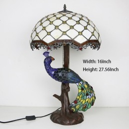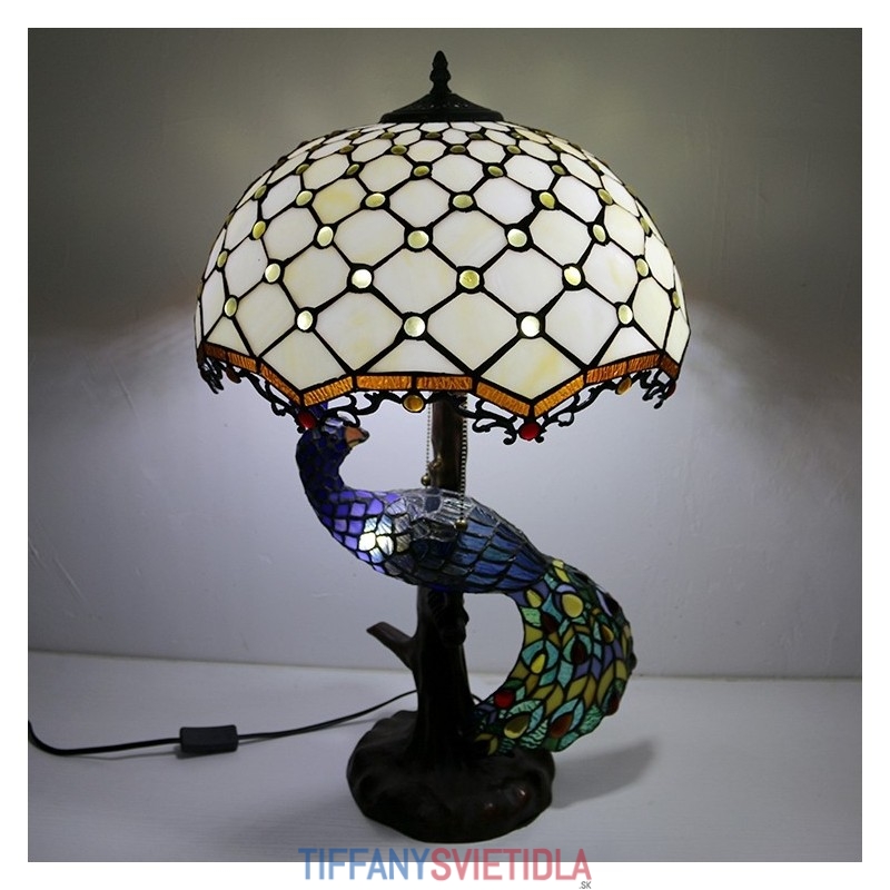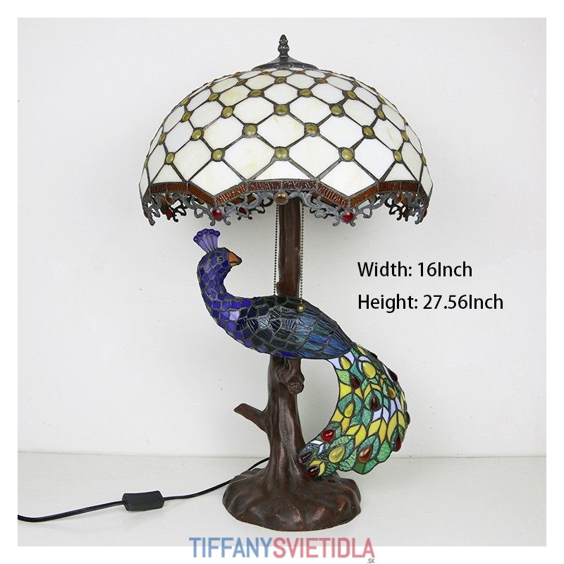 Stolová lampa v štýle Tiffany s pávovou základňou 16-palcové starožitné biele korálky vitráže stolové osvetlenie lampou
