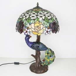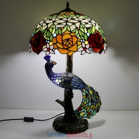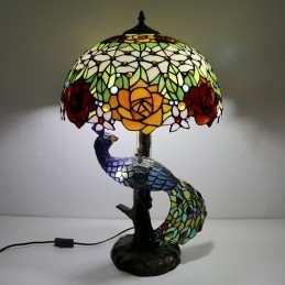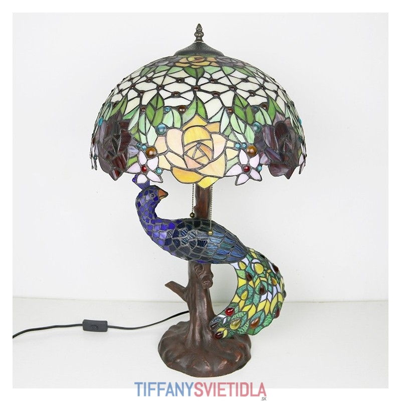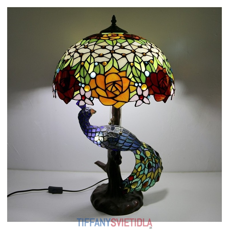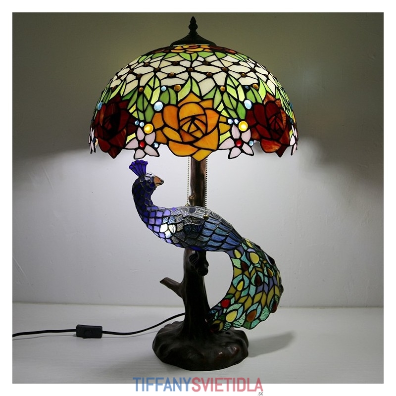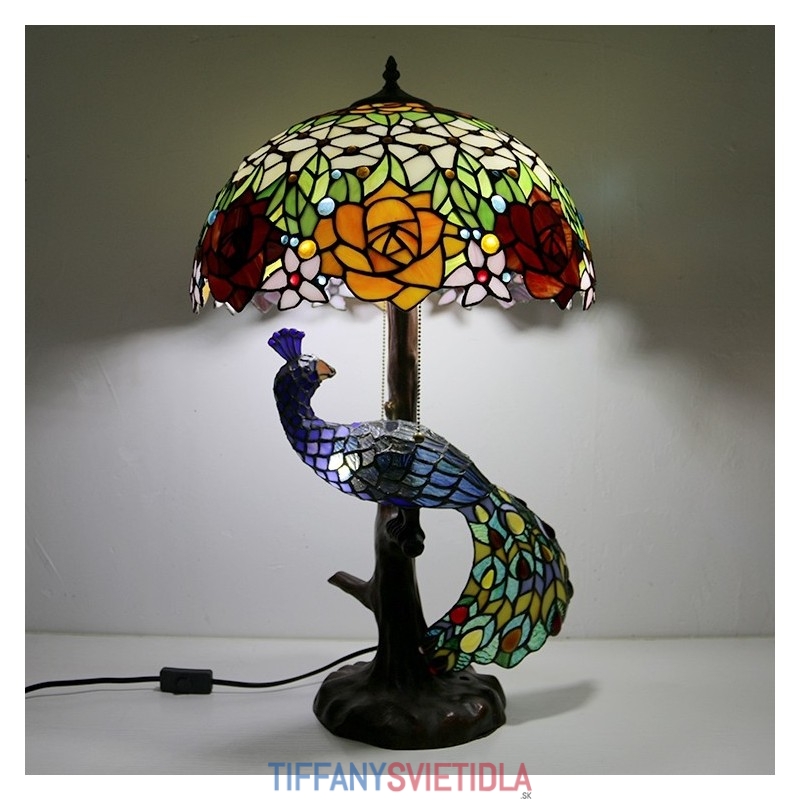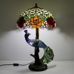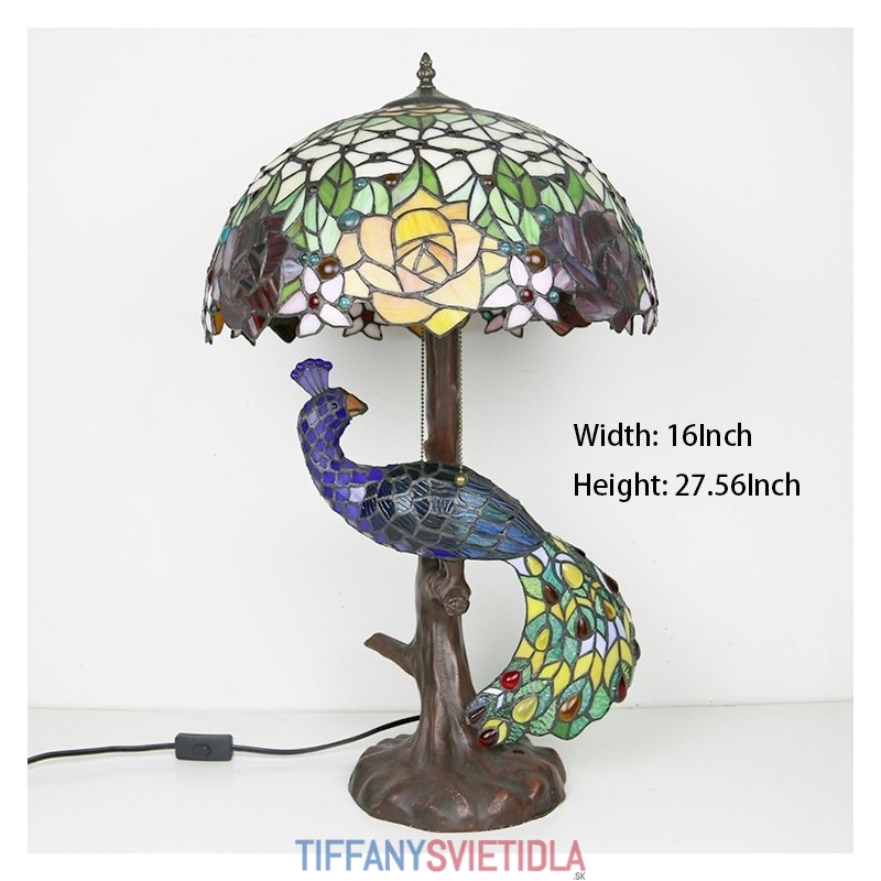Stolová lampa v štýle Tiffany s pávovým podstavcom 16-palcové starožitné ružové vitrážové osvetlenie stola