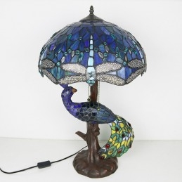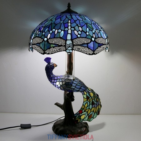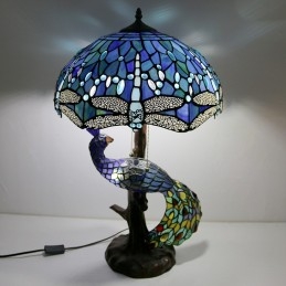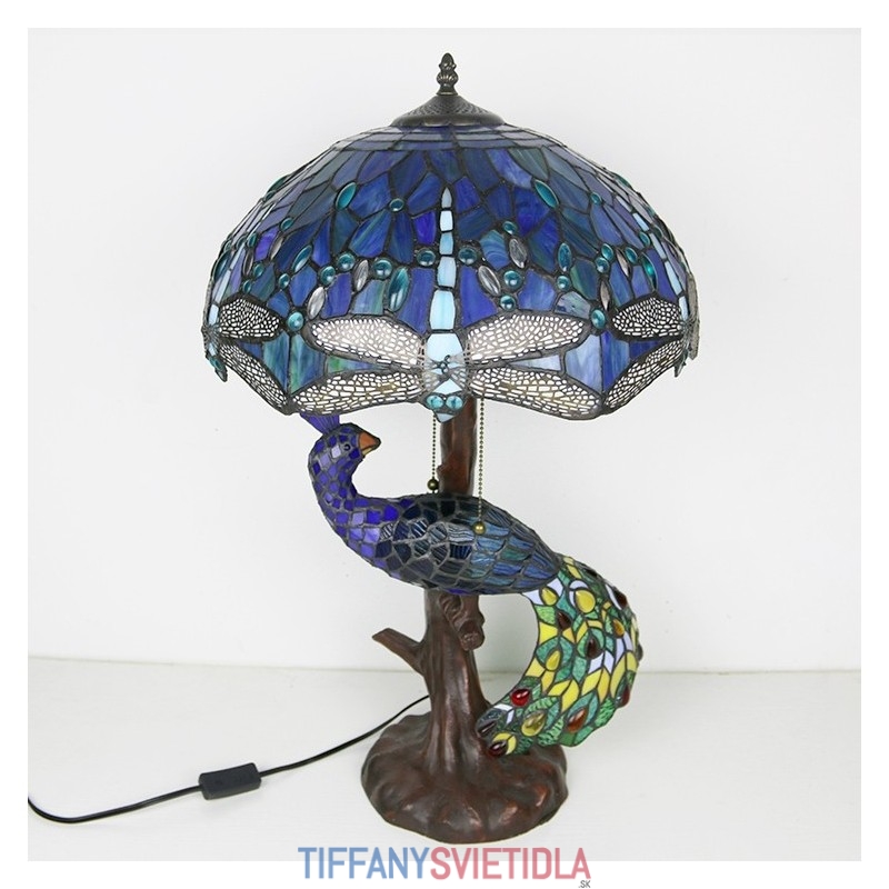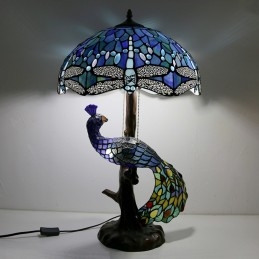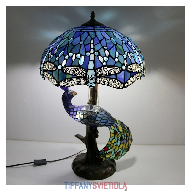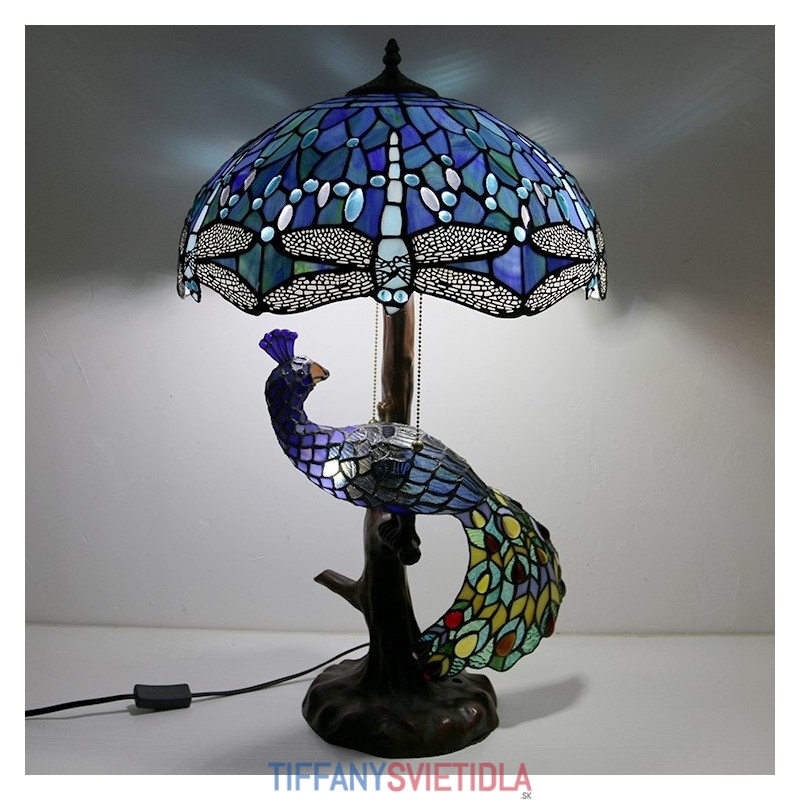 Unqiue vitrážová lampa stolná lampa v štýle Tiffany so skleneným pávom a stromovým podstavcom