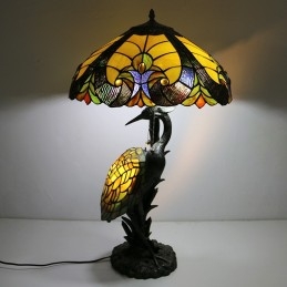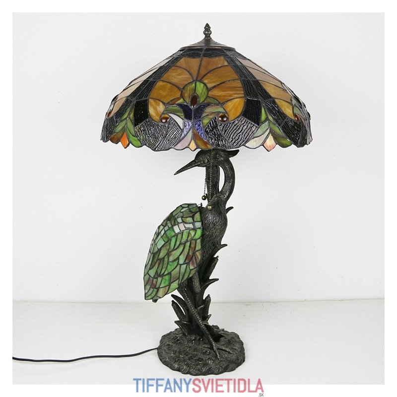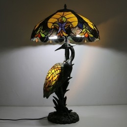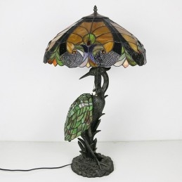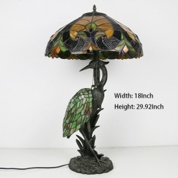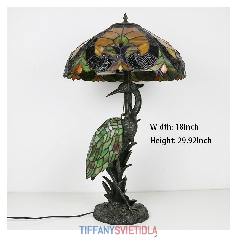 18-palcová 3-svetlá stolová lampa v štýle Tiffany Vintage zelená vážka stolová lampa z farebného skla s vtáčou nocou