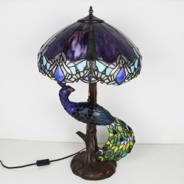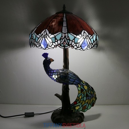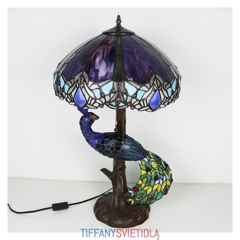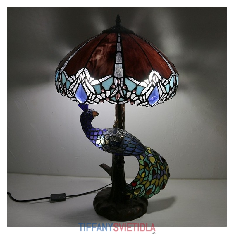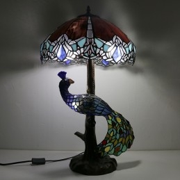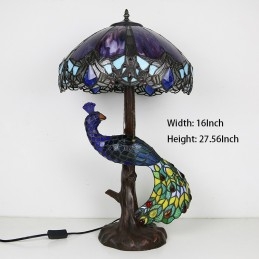 16-palcová stolová lampa z farebného skla Dragonfly Stolová lampa v štýle Tiffany so skleneným podstavcom páv a strom