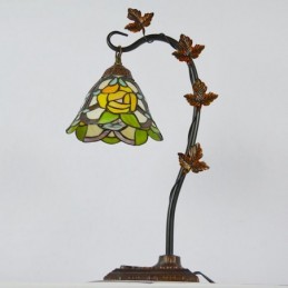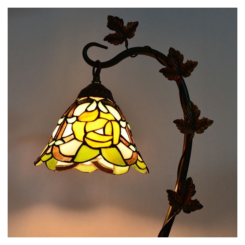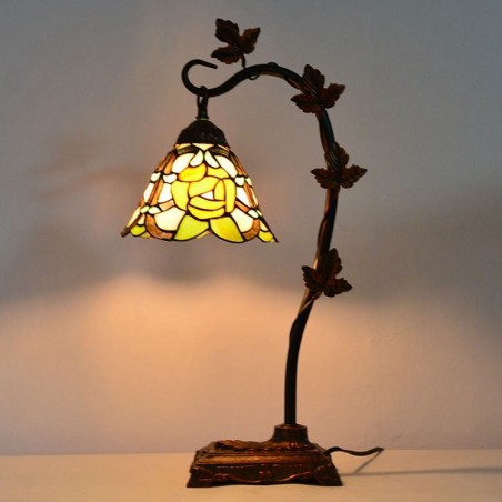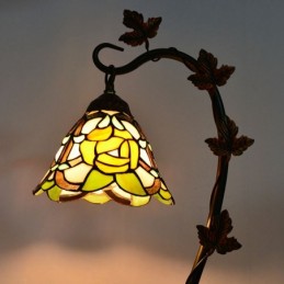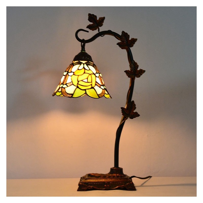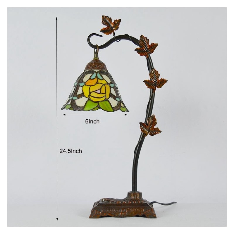 Domov Dekor Tiffany Stolová lampa Žltá Kvetinová vitráž Lamfade Stôl Svetlo Morning Glory Vine Kovová základňa