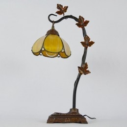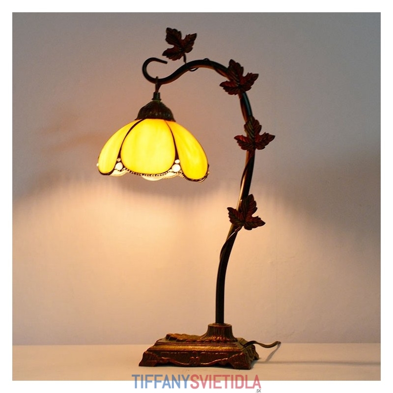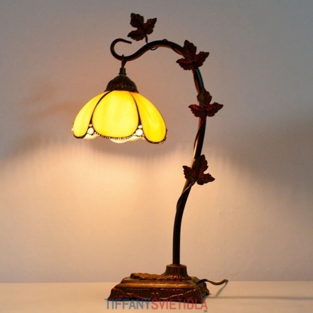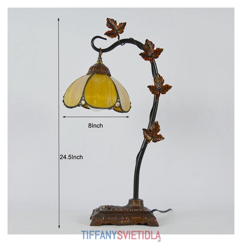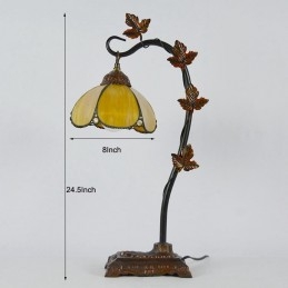 Domov Dekor Tiffany Stolová lampa Zlaté vitráže Lamphade Stôl Svetlo Morning Glory Vine Kovová základňa