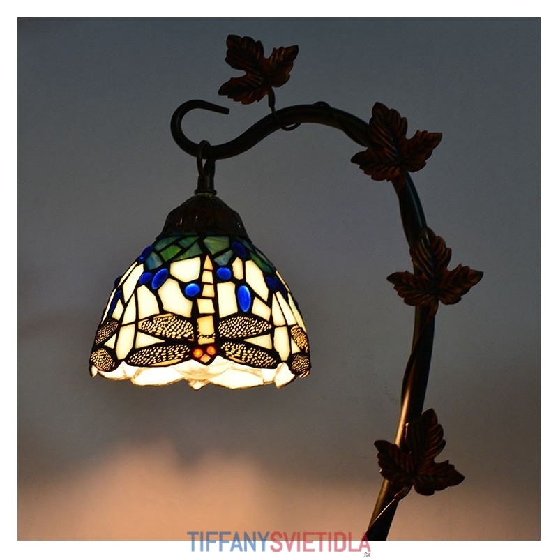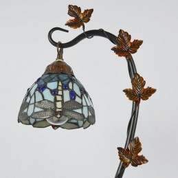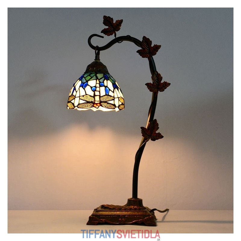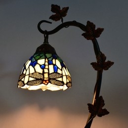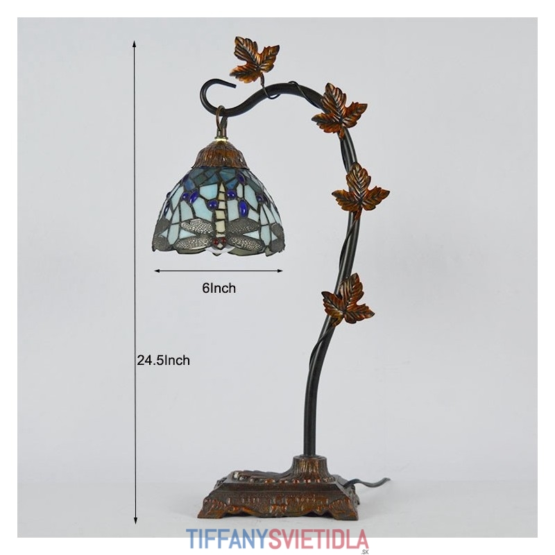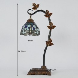 Domov Dekor Tiffany Stolná lampa Vážka Vitráže Lamphade Stôl Svetlo Morning Glory Vine Kovová základňa