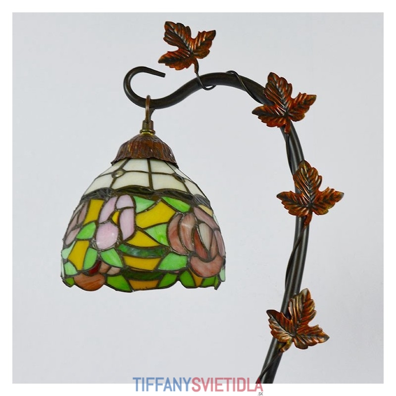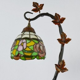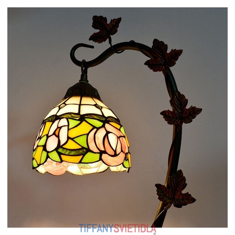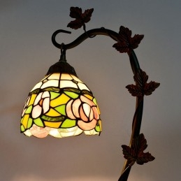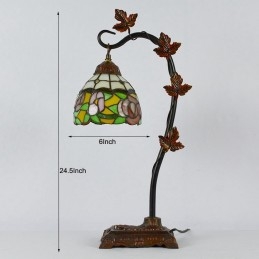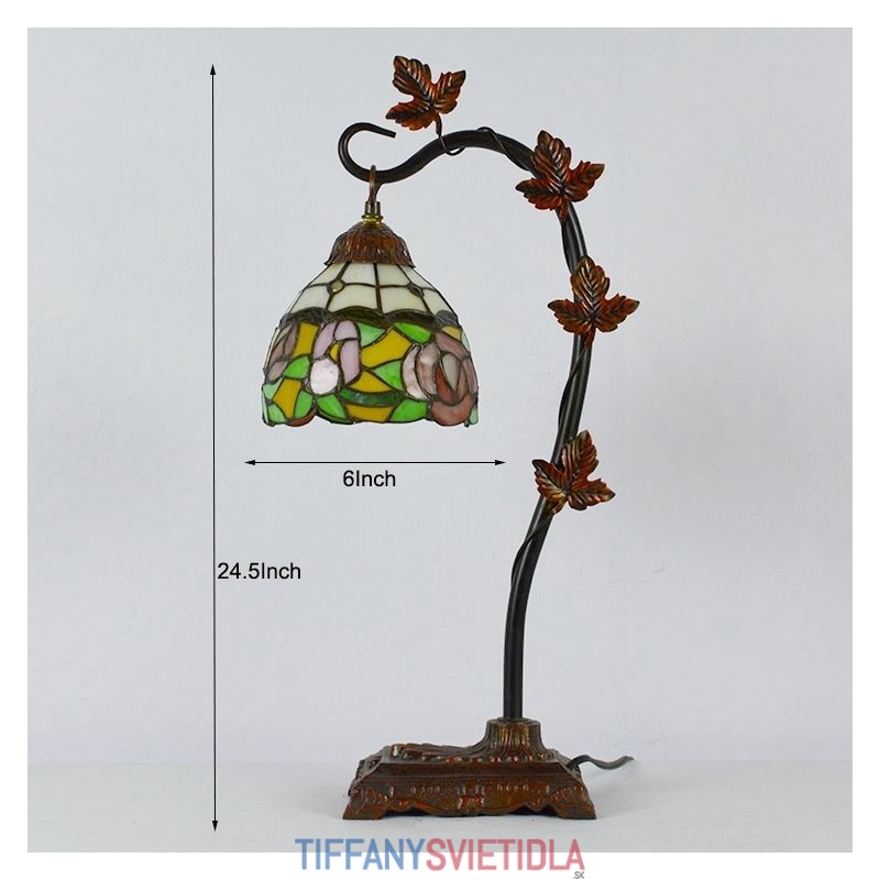 Domov Dekor Tiffany Stolová lampa Ružová Ruža Vitráže Lamphade Stôl Svetlo Morning Glory Vine Kovová základňa