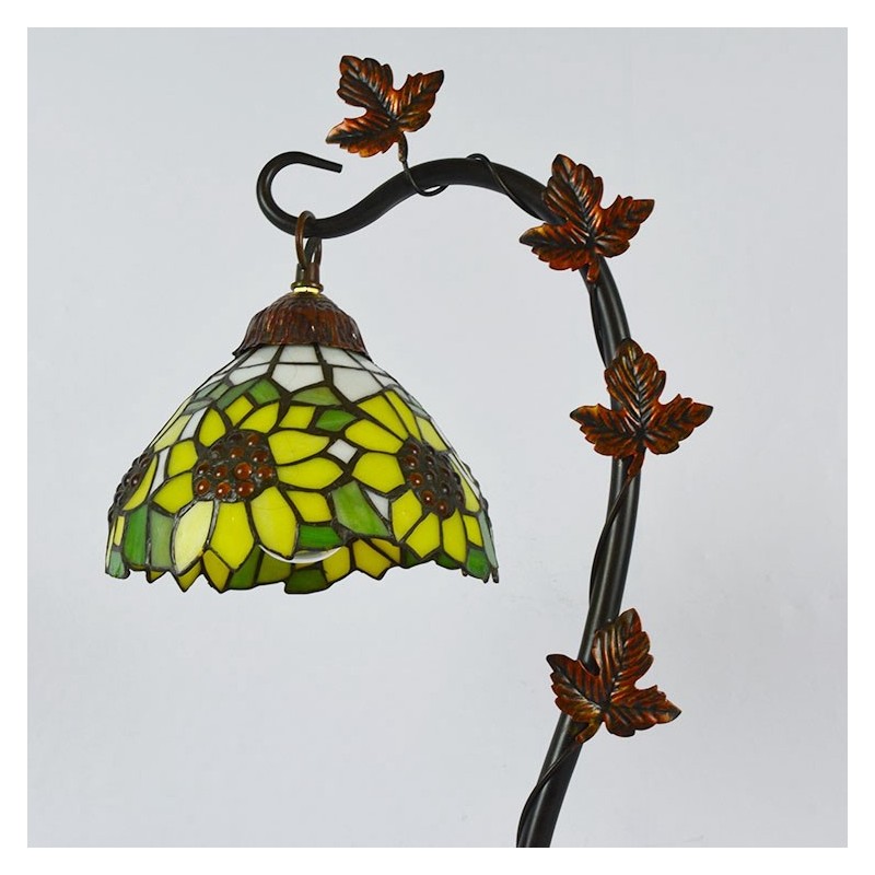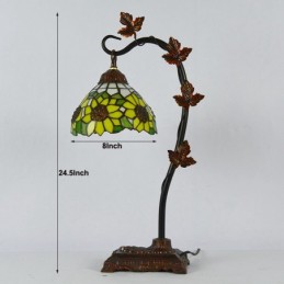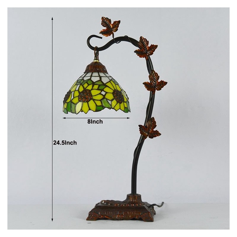 Domov Dekor Tiffany Stolová lampa Slnečnica Farebné sklo Lamfade Stôl Svetlo Morning Glory Vine Kovová základňa