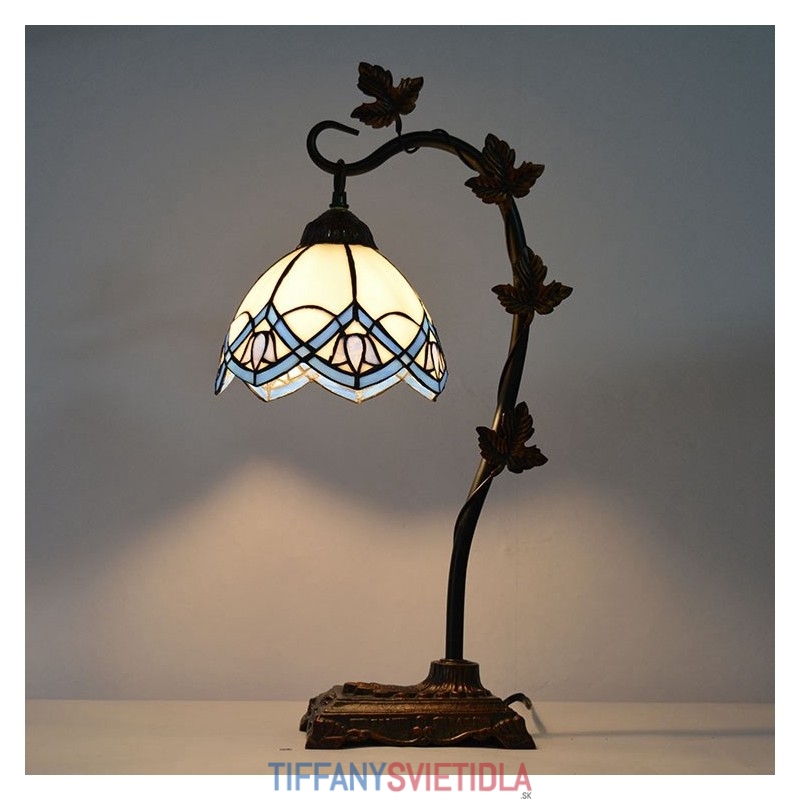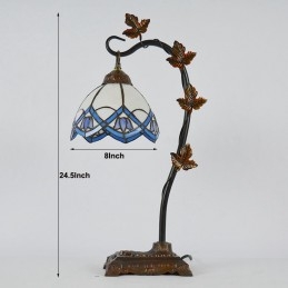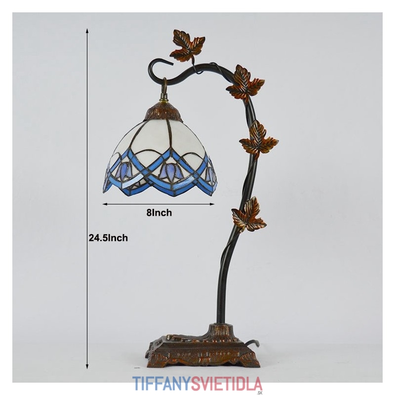 8-palcová stolová lampa z farebného skla v štýle Tiffany Kreatívny dekor stolové svetlá s kovovou základňou Morning Glory Vine