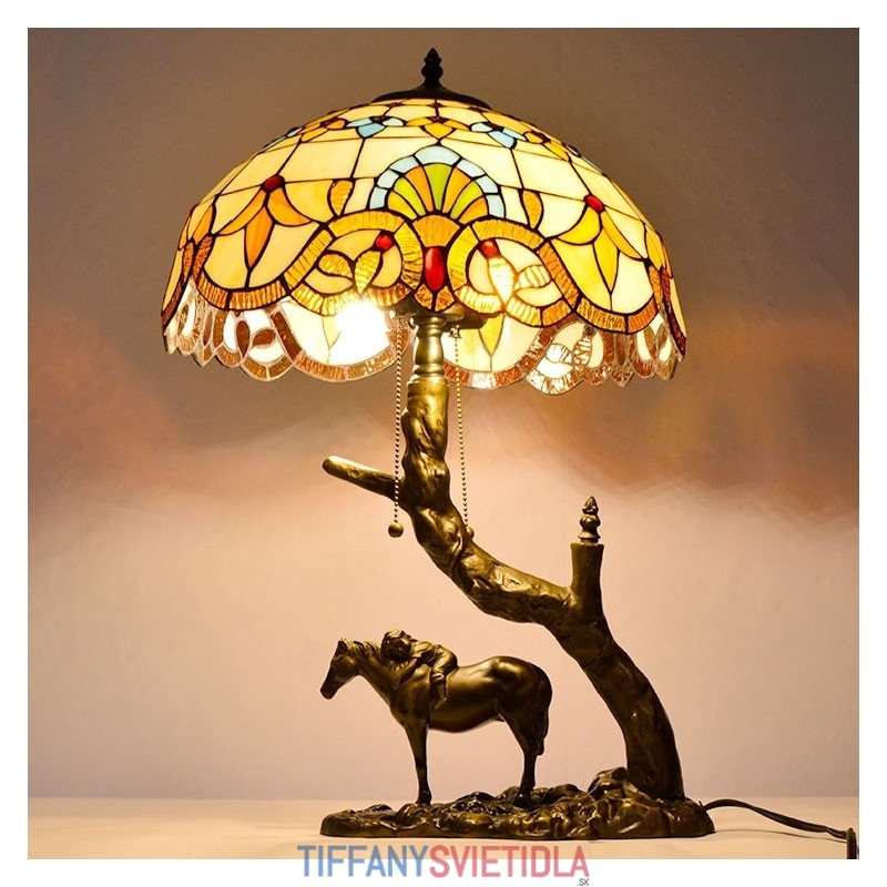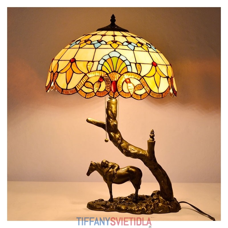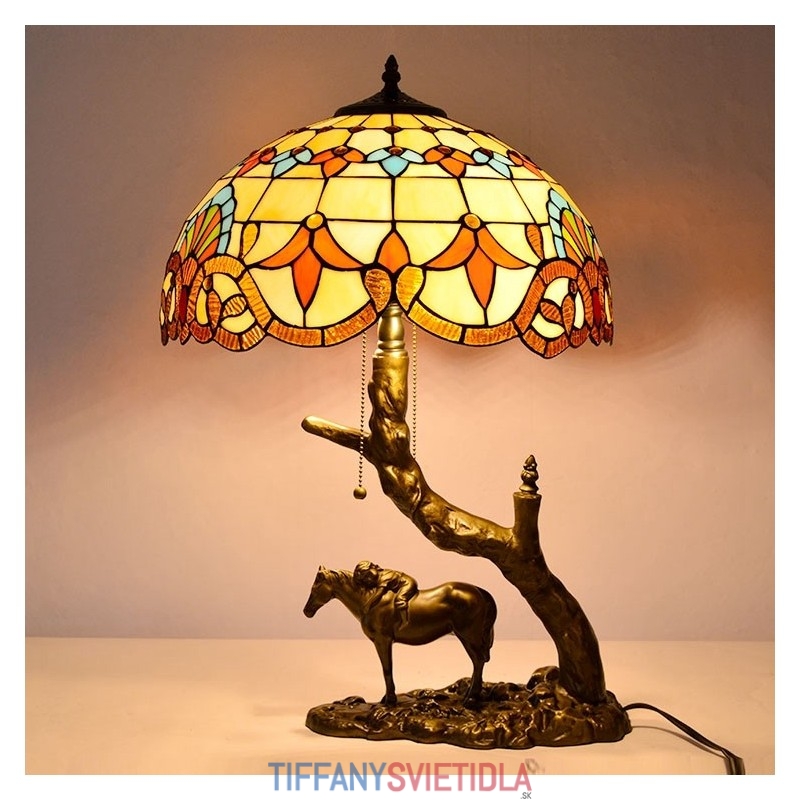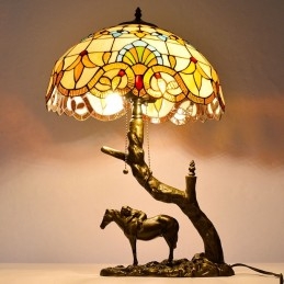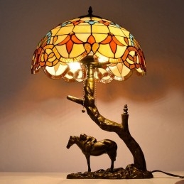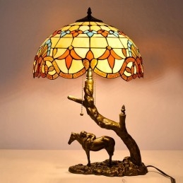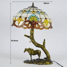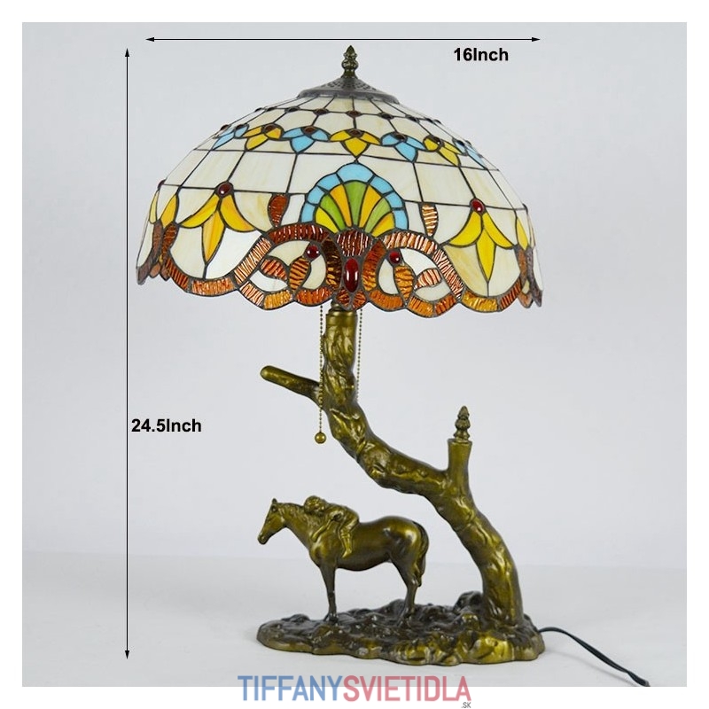 Stolová lampa z farebného skla v štýle Tiffany so 16-palcovou barokovou lampou so základňou z konskej živice