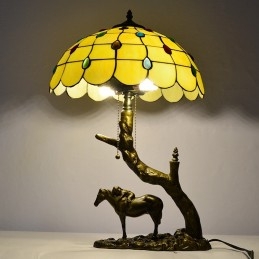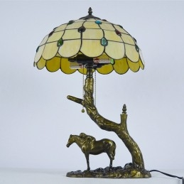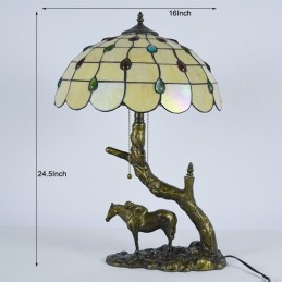 Stolová lampa z farebného skla Tiffany Style Stôl Svetlo s 16-palcovou pávovou lampou so základňou z konskej živice