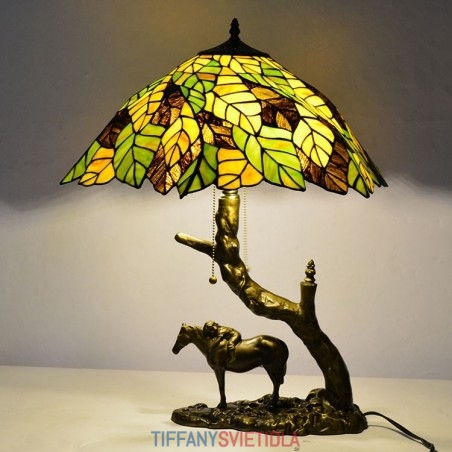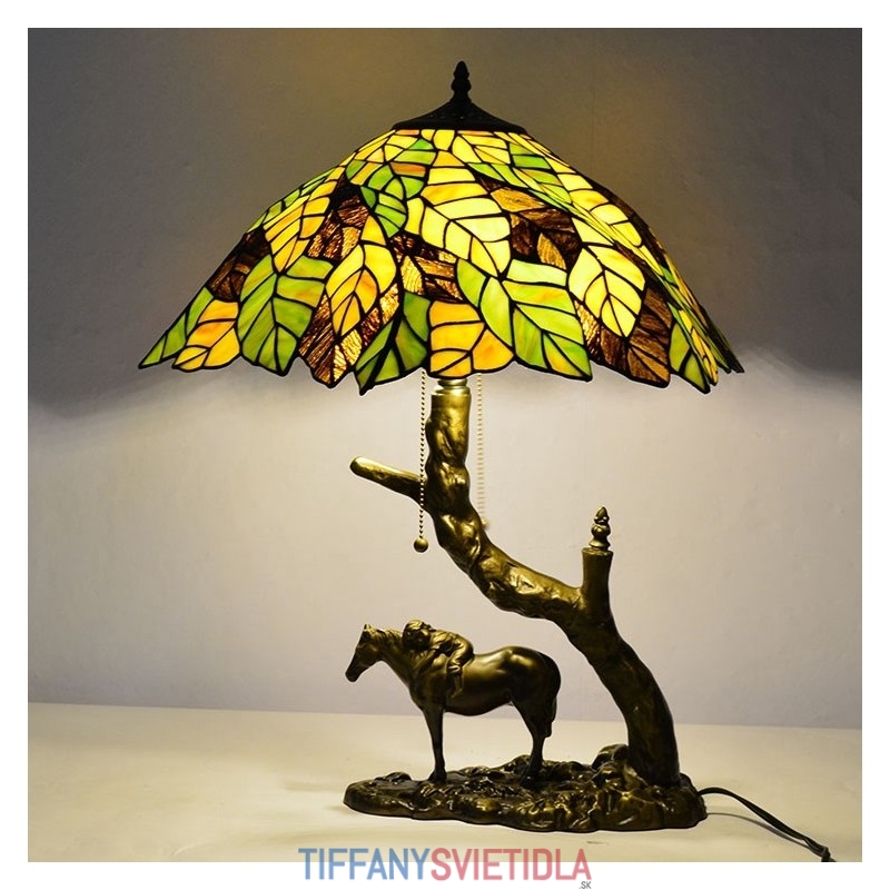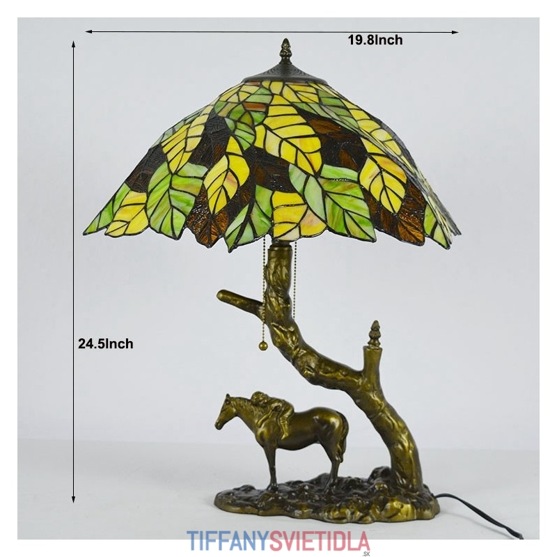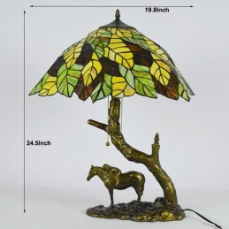 Stolová lampa z farebného skla Tiffany Style Stolová lampa s 19,8 palcovým listovým lampášom so základňou z konskej živice