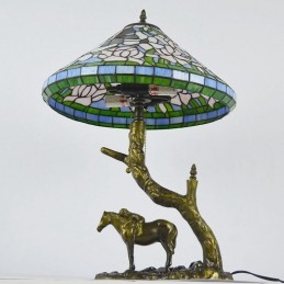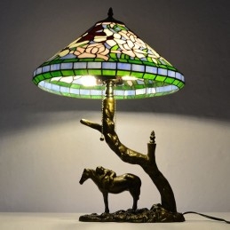 Stolová lampa z farebného skla Tiffany Style Stôl Svetlo so 16-palcovým kužeľovým svietidlom so základňou z konskej živice