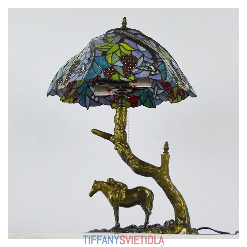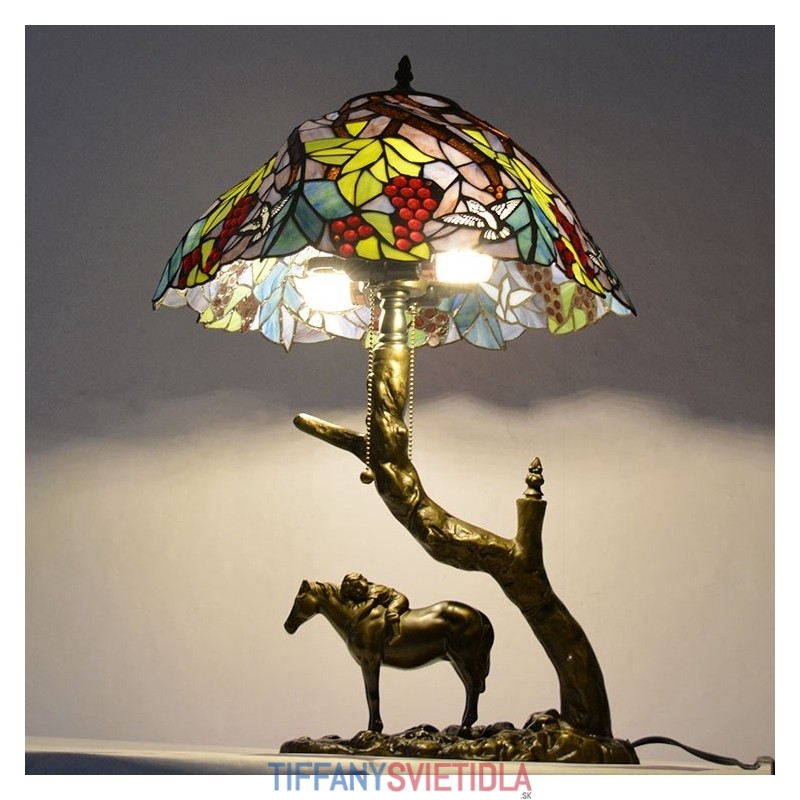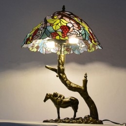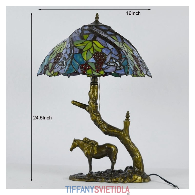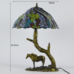 Stolová lampa z farebného skla Tiffany Style Stôl Svetlo s 16-palcovým hroznovým lampou so základňou z konskej živice