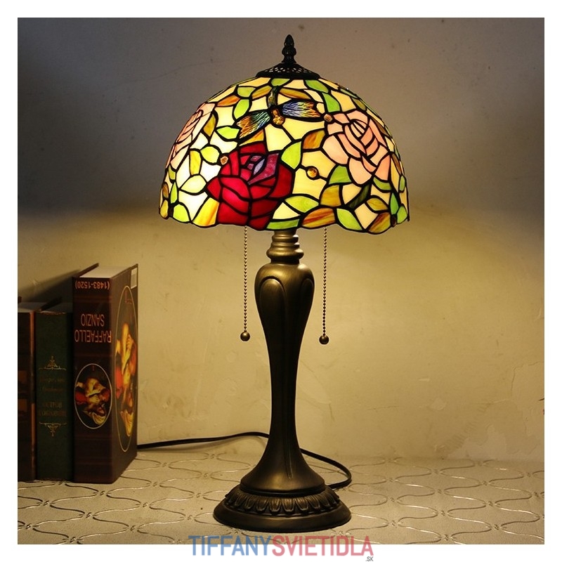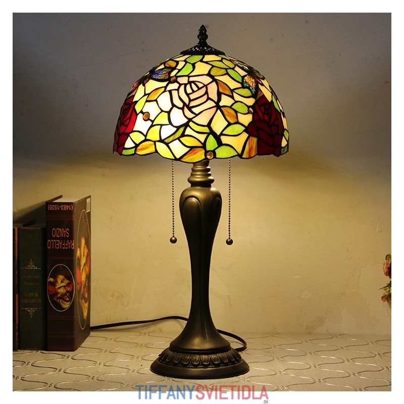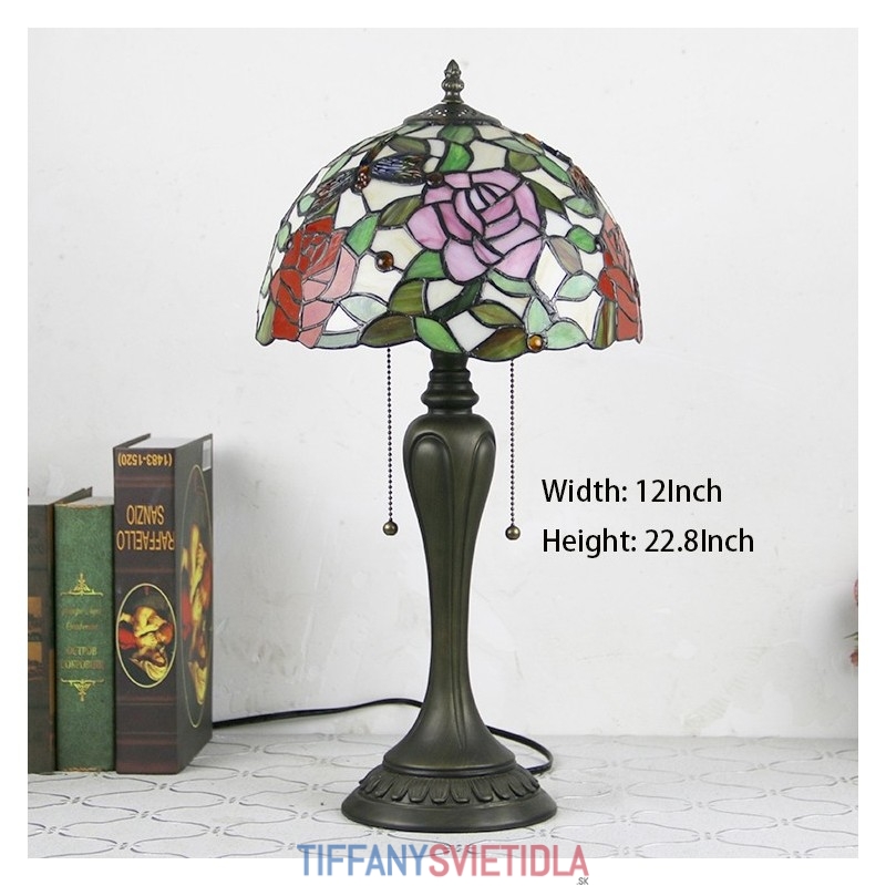 12-palcová stolová lampa v štýle Tiffany Elegantná kvetinová stolová lampa z farebného skla Kreatívna spálňa, nočný stôl