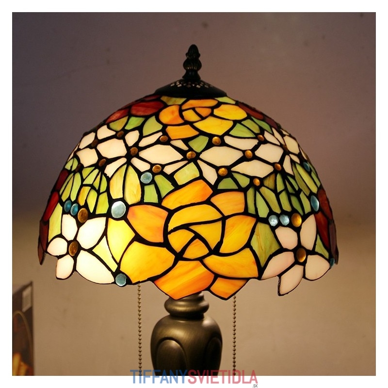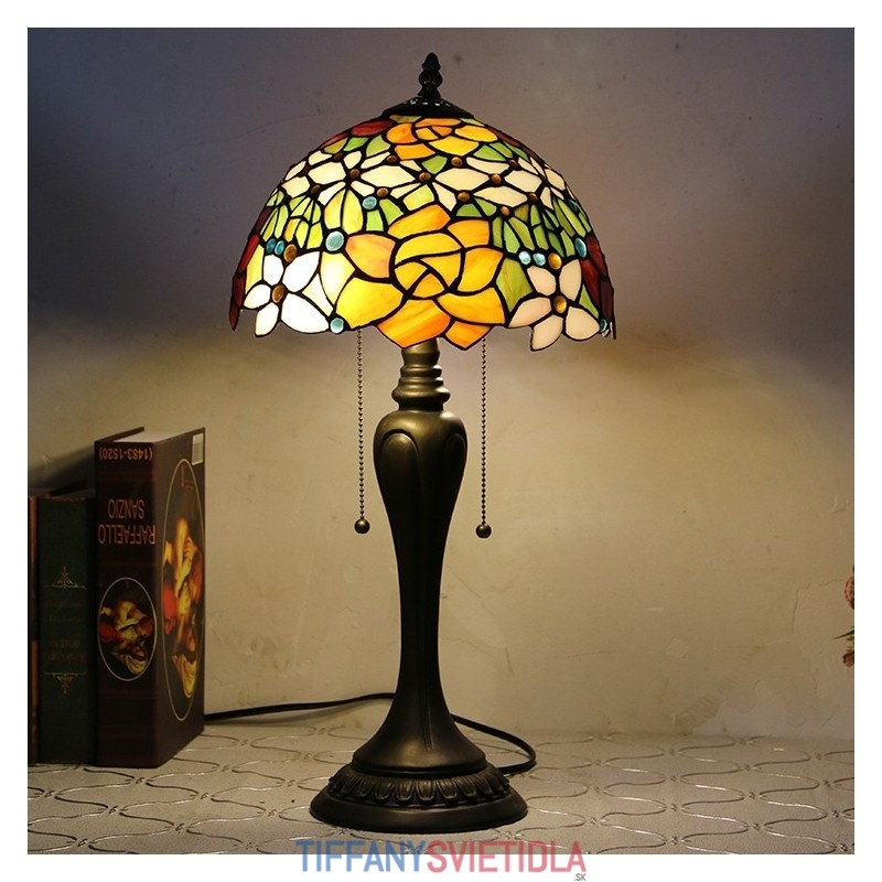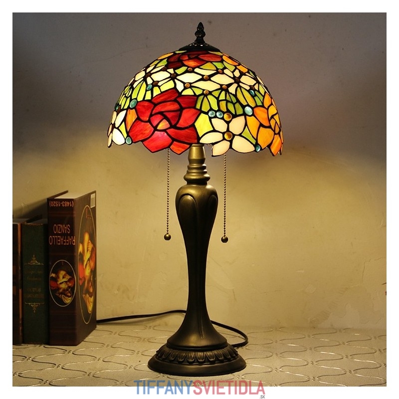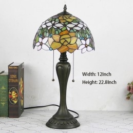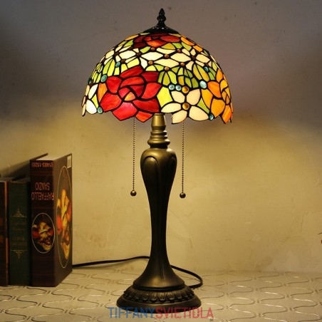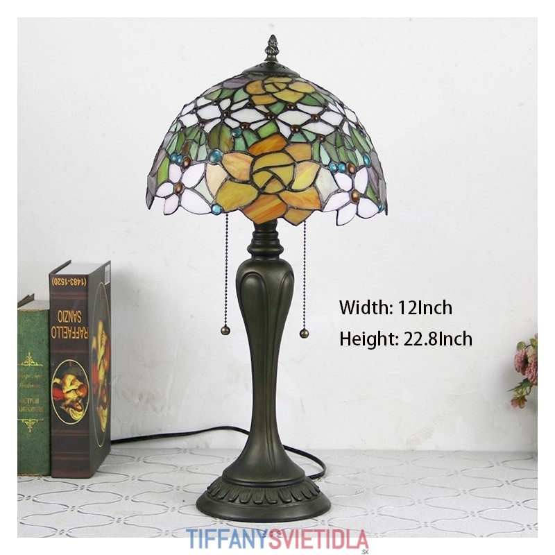 12-palcová stolová lampa v štýle Tiffany Ružový kvet stolová lampa z farebného skla Stolná lampa do kreatívnej spálne