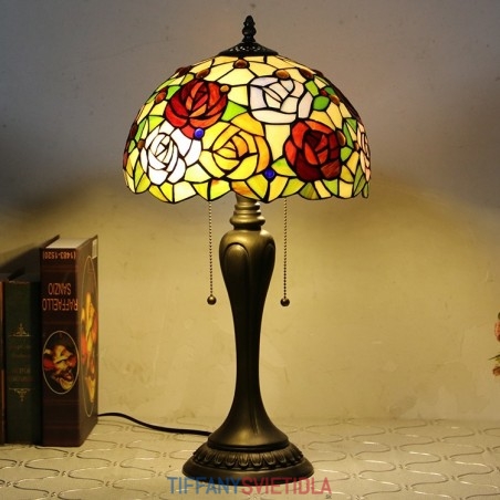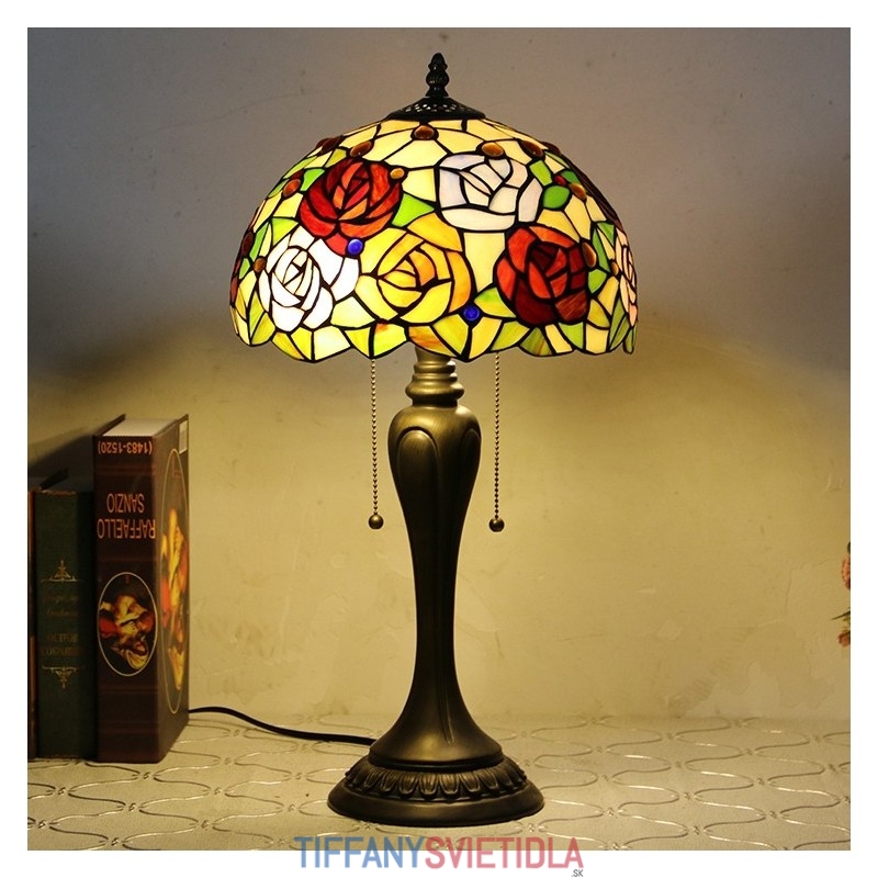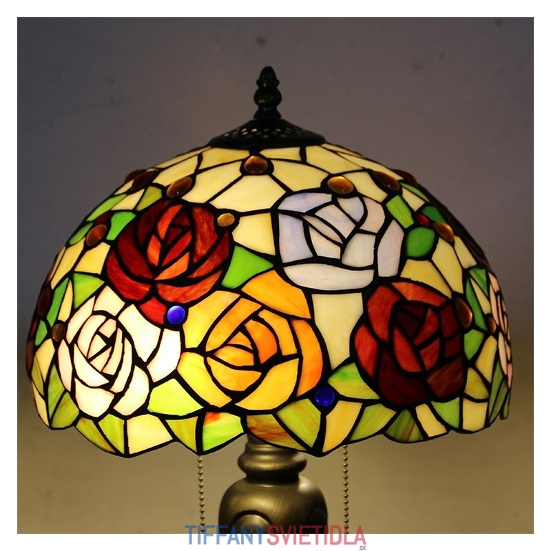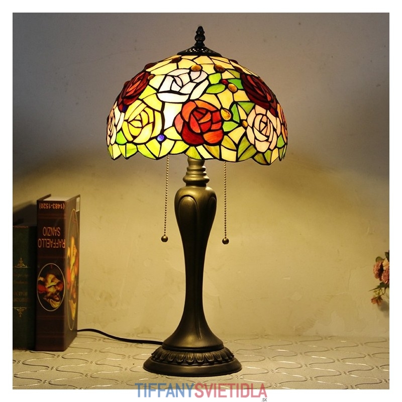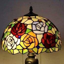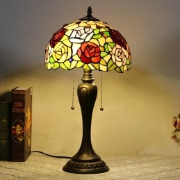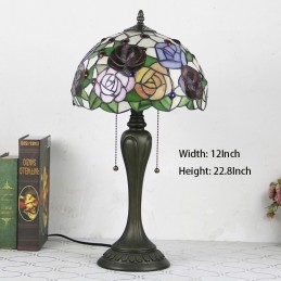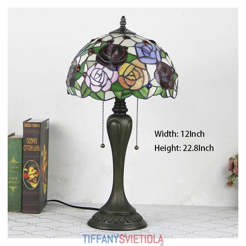 12-palcová stolová lampa v štýle Tiffany Ružová kvetinová stolová lampa z farebného skla Stolná lampa do kreatívnej spálne