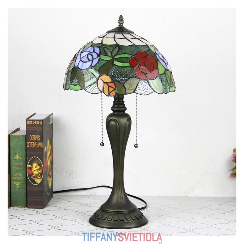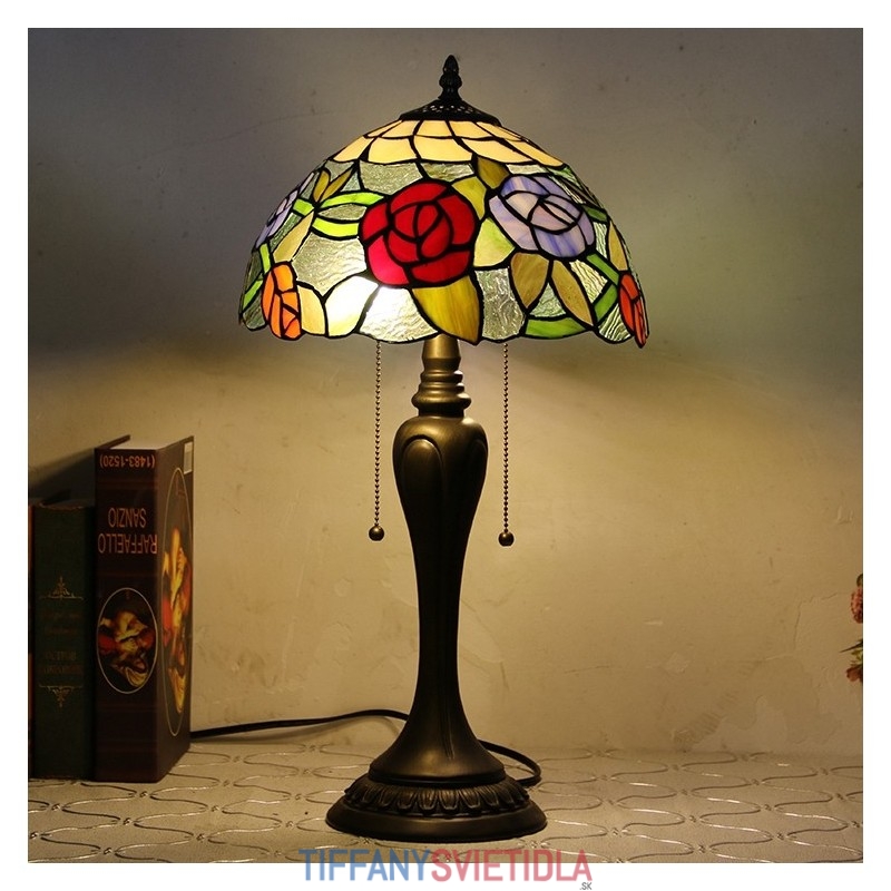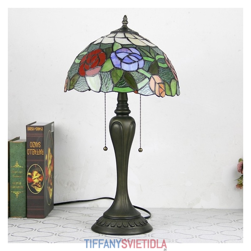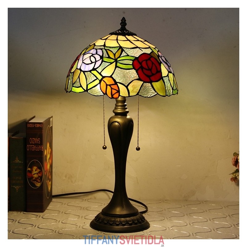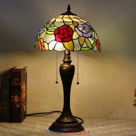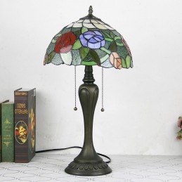 12-palcová stolová lampa v štýle Tiffany Ružová stolová lampa z farebného skla Kreatívna spálňa Nočný stolík
