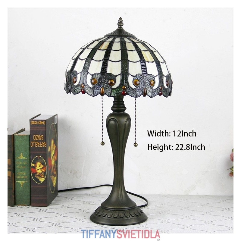 12-palcová stolová lampa v štýle Tiffany Páv Stolová lampa z farebného skla Kreatívna spálňa Nočný stôl