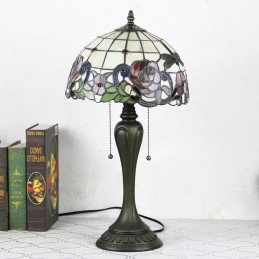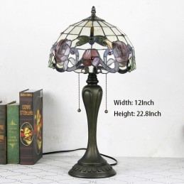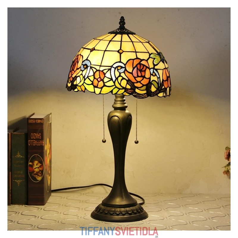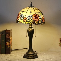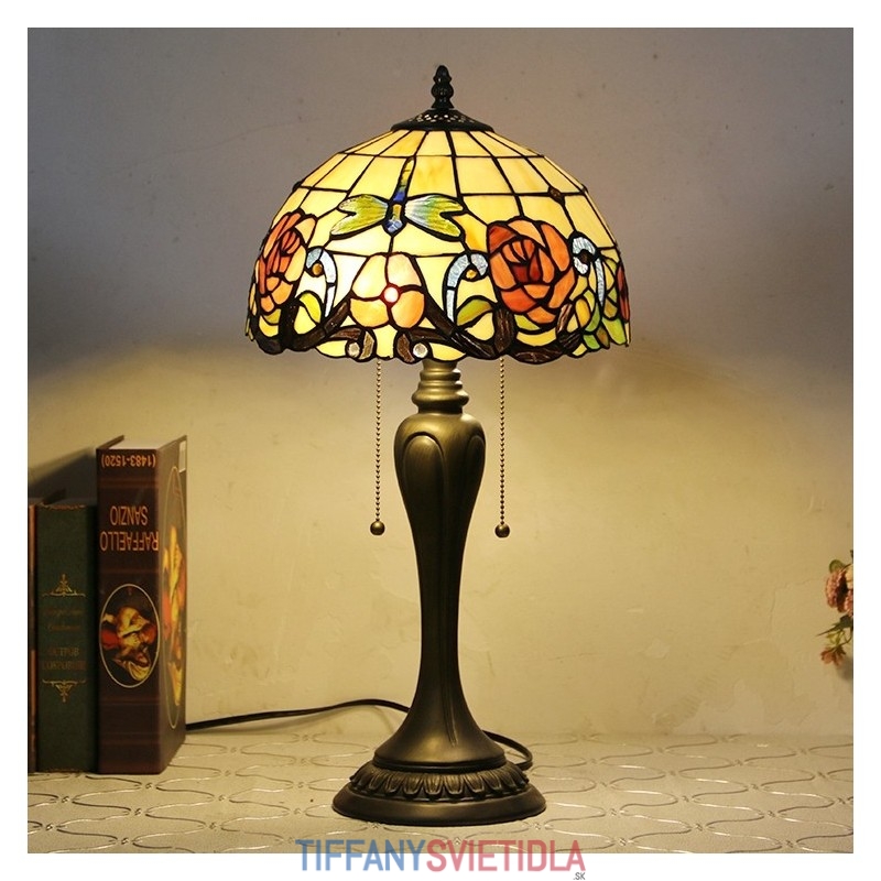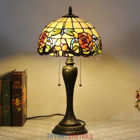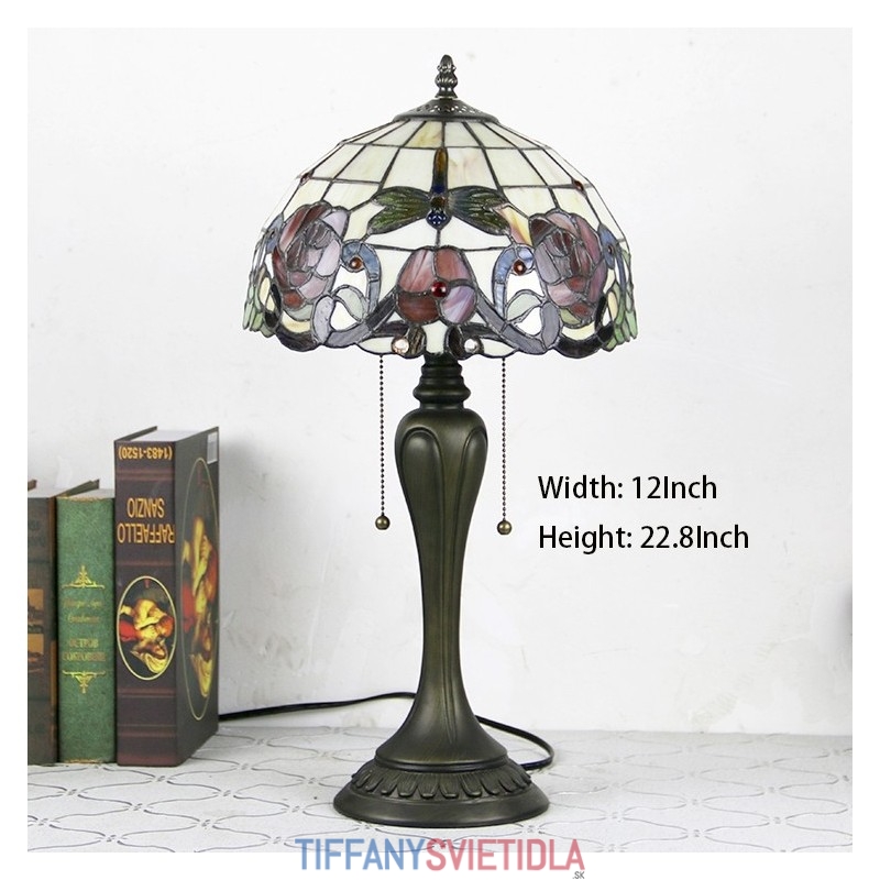 12-palcová stolová lampa v štýle Tiffany Stolová lampa z farebného skla červená ruža Svetlo na stolík do kreatívnej spálne