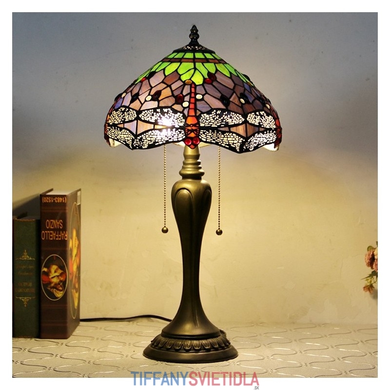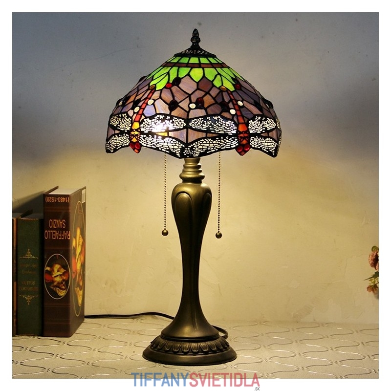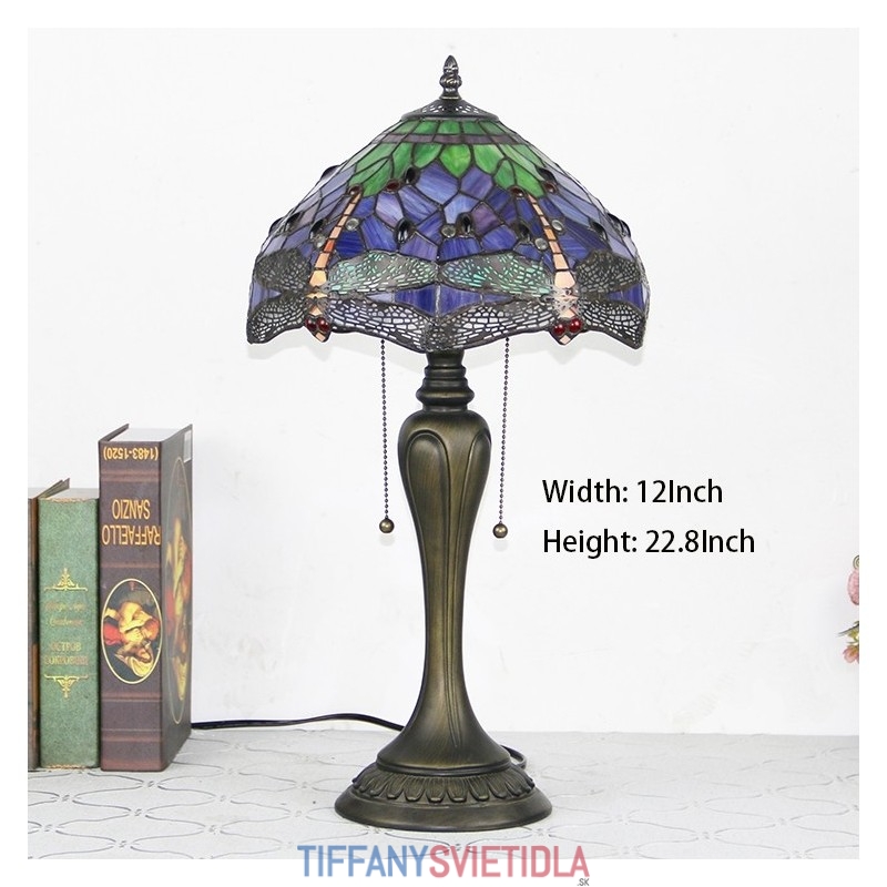 Stolová lampa v štýle Tiffany 12In Stolová lampa z farebného skla Vážka v kreatívnej spálni Svetlo na nočný stôl