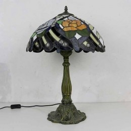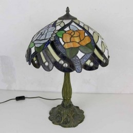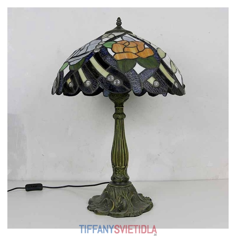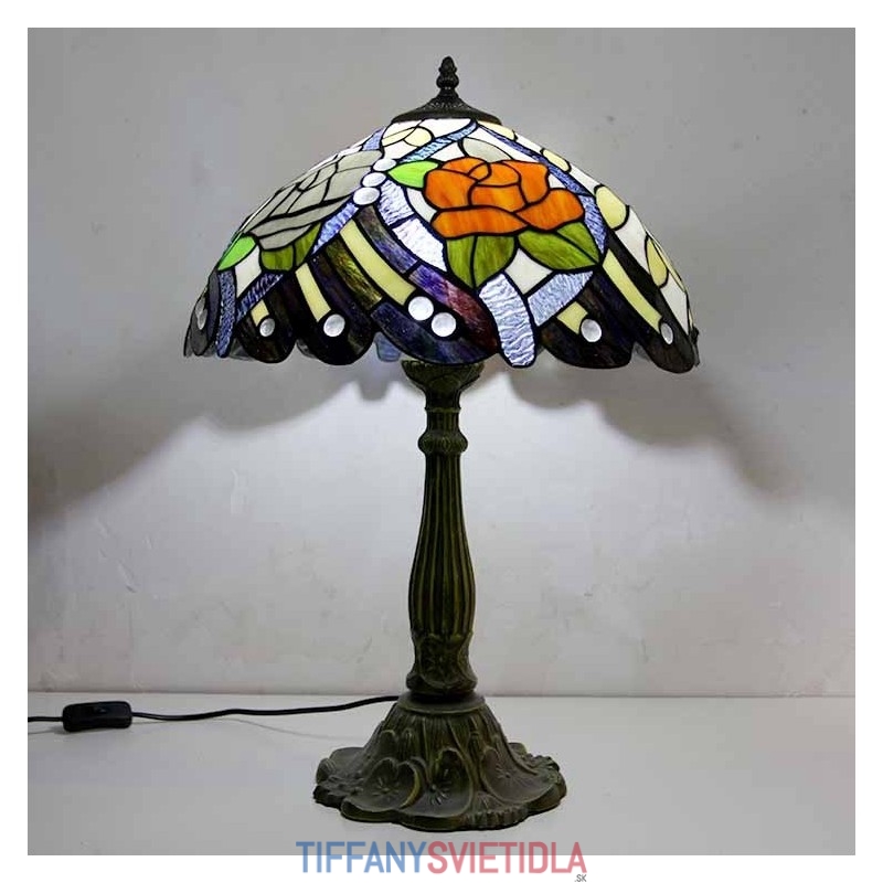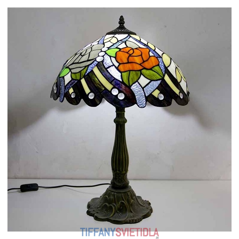 Rustikálna stolová lampa z farebného skla z ruže