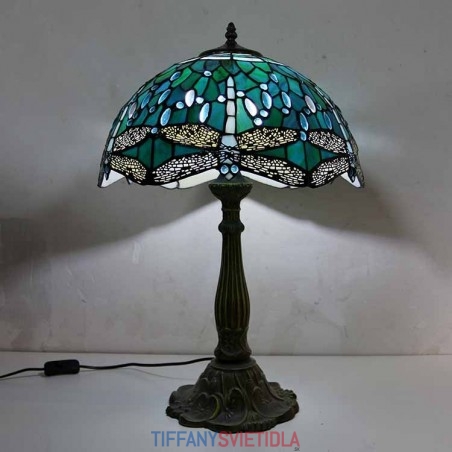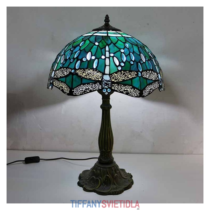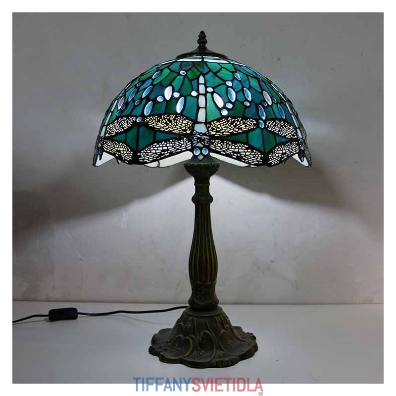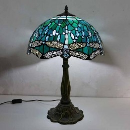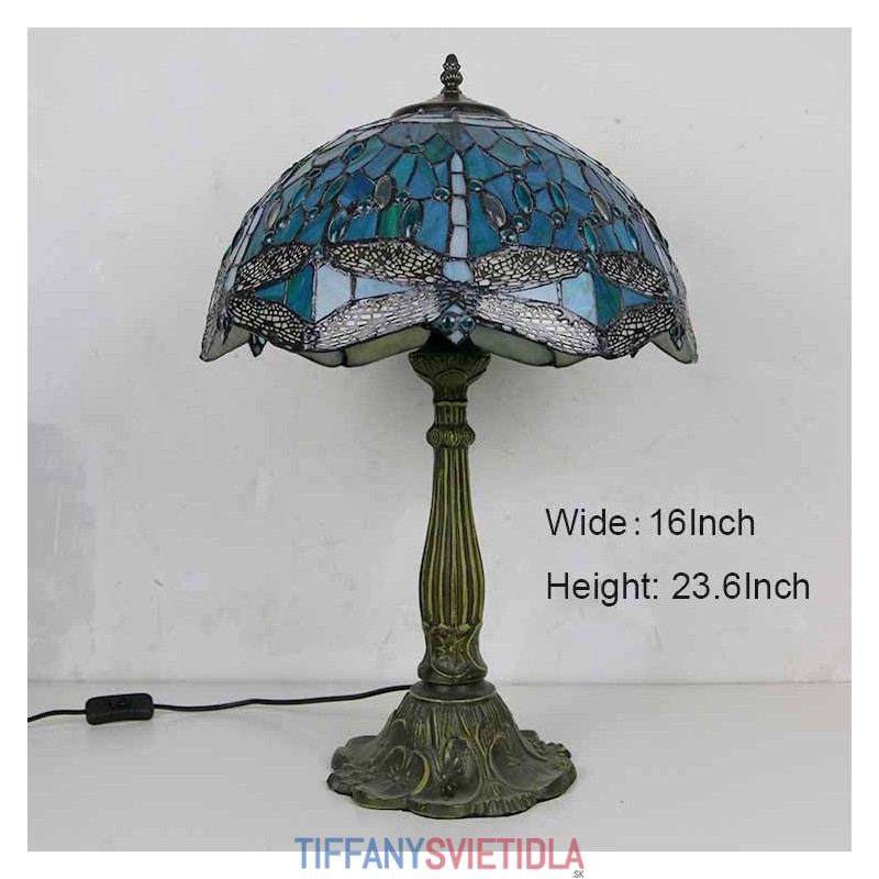 Stolová lampa z farebného skla Dragonfly v štýle Tiffany so 16-palcovou širokou lampou a základňou zo zliatiny zinku