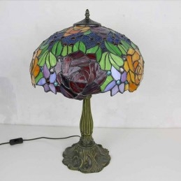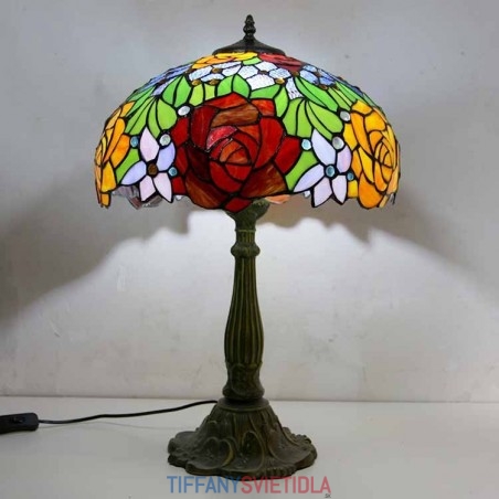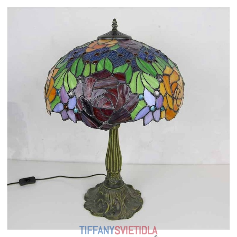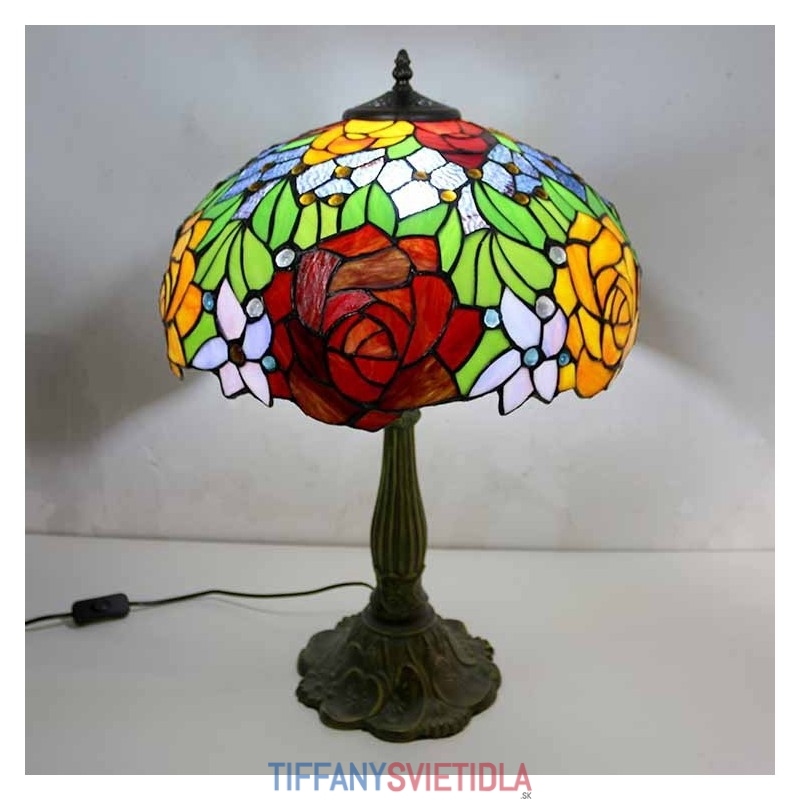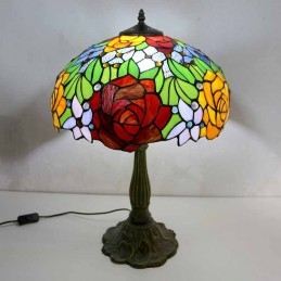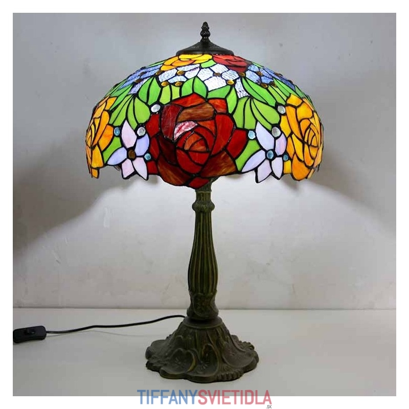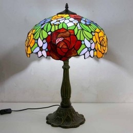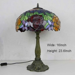 Stolová lampa z farebného skla s kvetom ruže Stolová lampa v štýle Tiffany so 16 palcovou širokou lampou a základňou zo zliatiny zinku