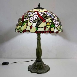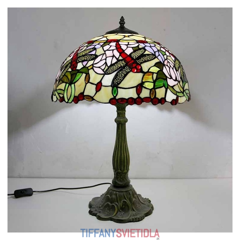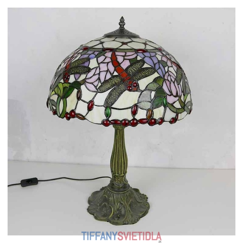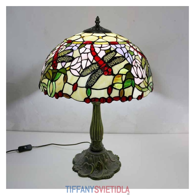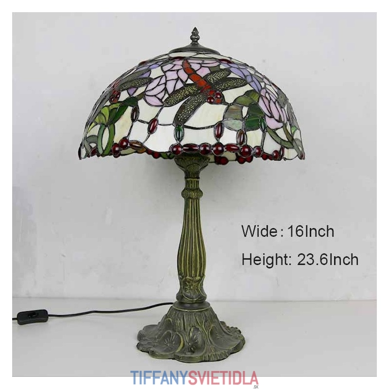 Stolová lampa z farebného skla Dragonflies Tiffany Style Stolová lampa so 16-palcovou širokou lampou a základňou zo zliatiny zinku