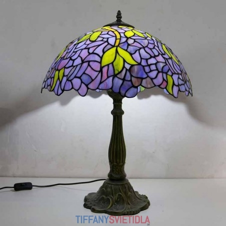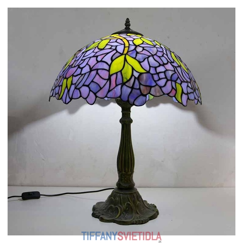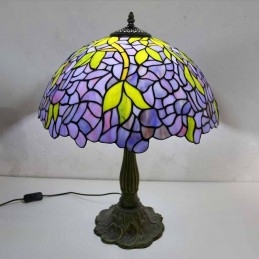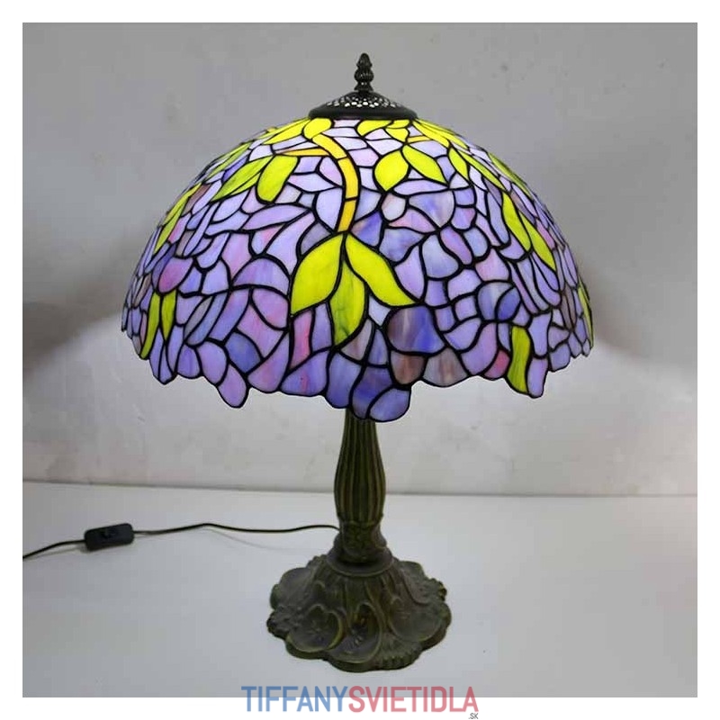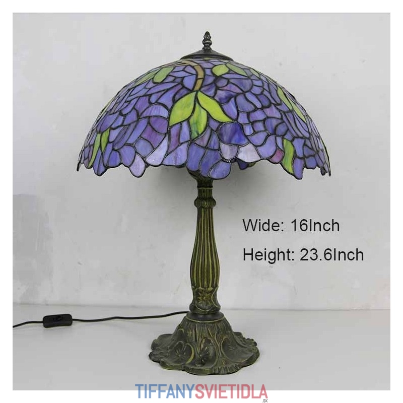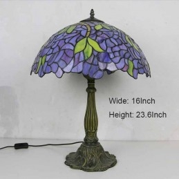 Stolová lampa z farebného skla Wisteria Tiffany Style Stolová lampa so 16-palcovou širokou lampou a základňou zo zliatiny zinku