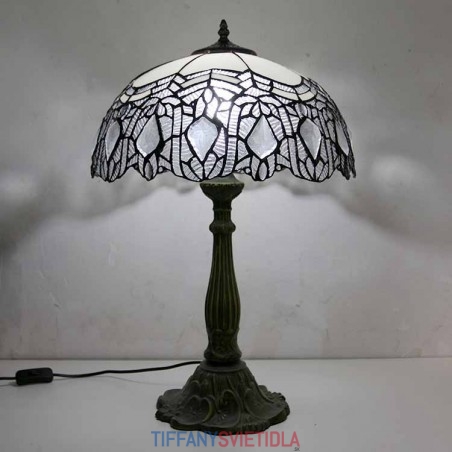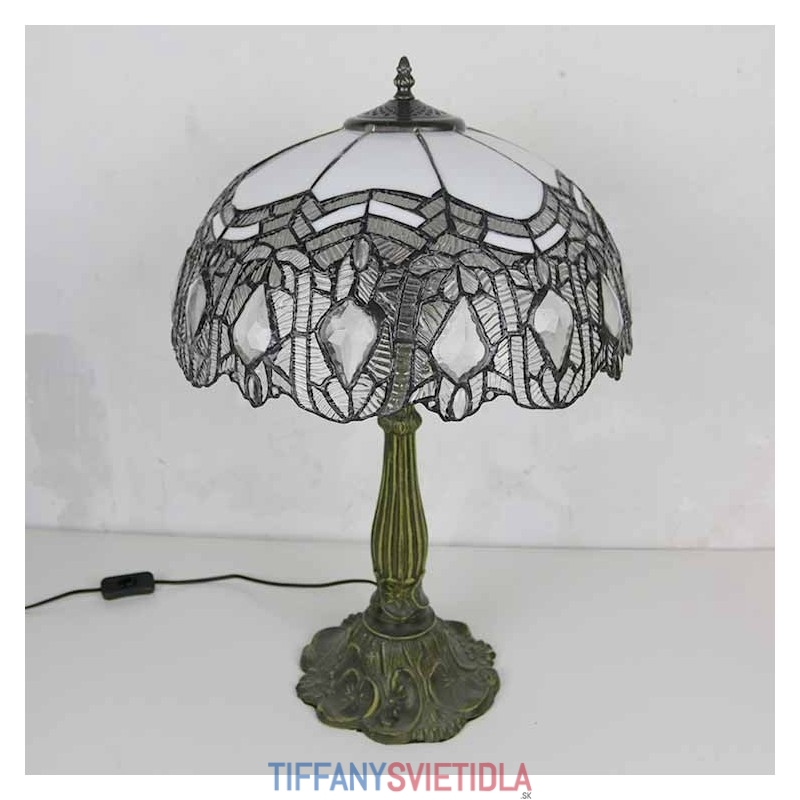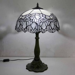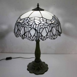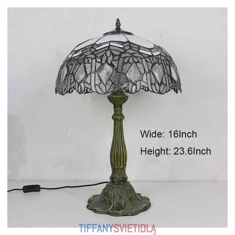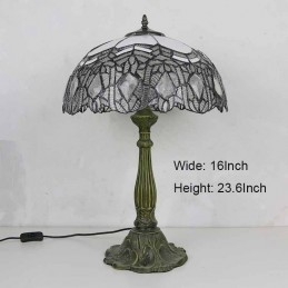 Vintage stolová lampa z farebného skla v štýle Tiffany so 16-palcovou širokou lampou a základňou zo zliatiny zinku