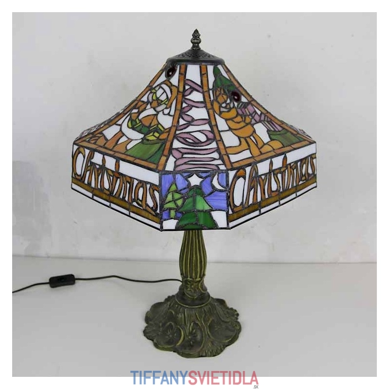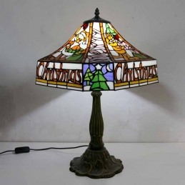 Pekná štvorcová stolová lampa z farebného skla v štýle Tiffany so 16-palcovou širokou lampou a základňou zo zliatiny zinku