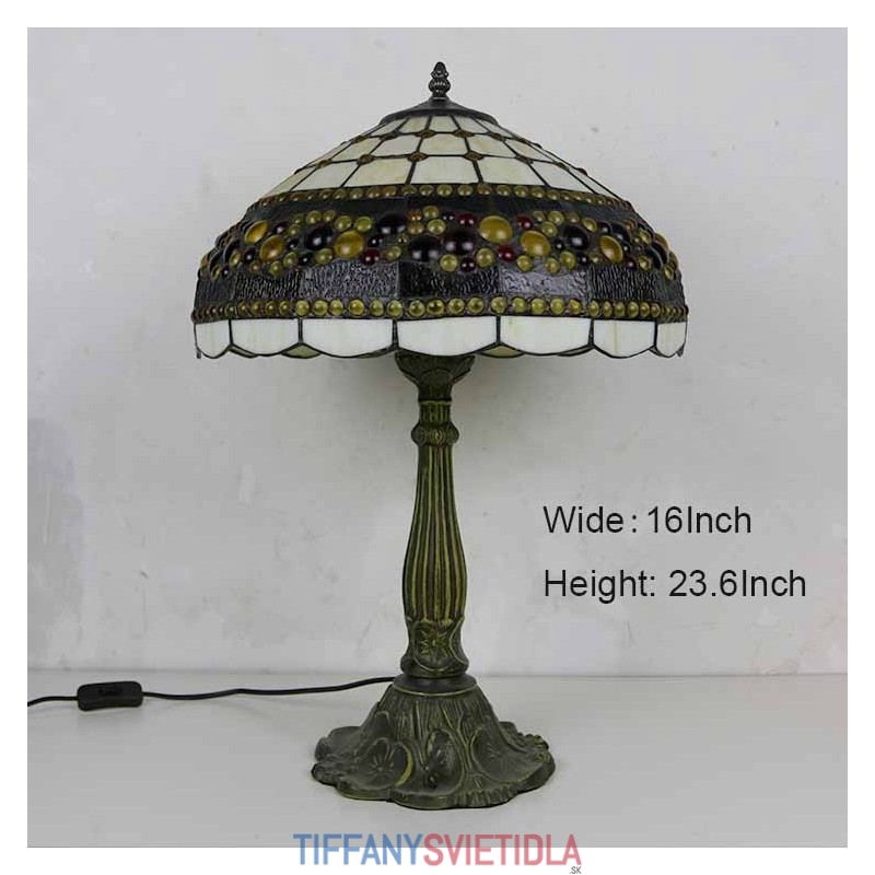 Stolová lampa z farebného skla na šperky Tiffany Style Stôl Light so 16 palcovou širokou lampou a základňou zo zliatiny zinku