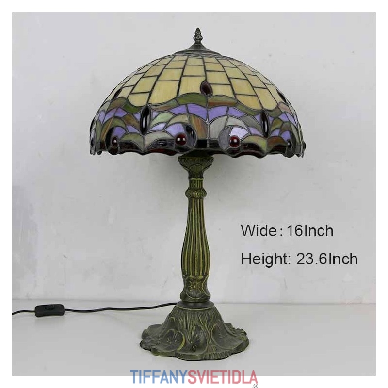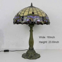 Stolová lampa z farebného skla Tiffany Style Stolová lampa so 16-palcovou širokou lampou a základňou zo zliatiny zinku