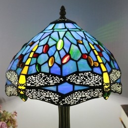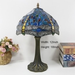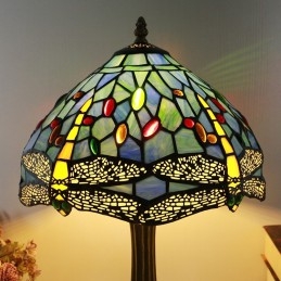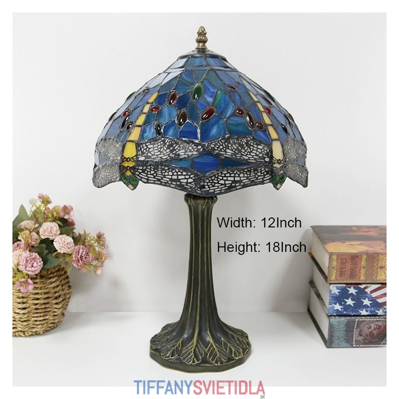 Stolová lampa v štýle Tiffany 12-palcová žltá vážka z farebného skla Lamphade Stôl Light Creative Art Home Decor