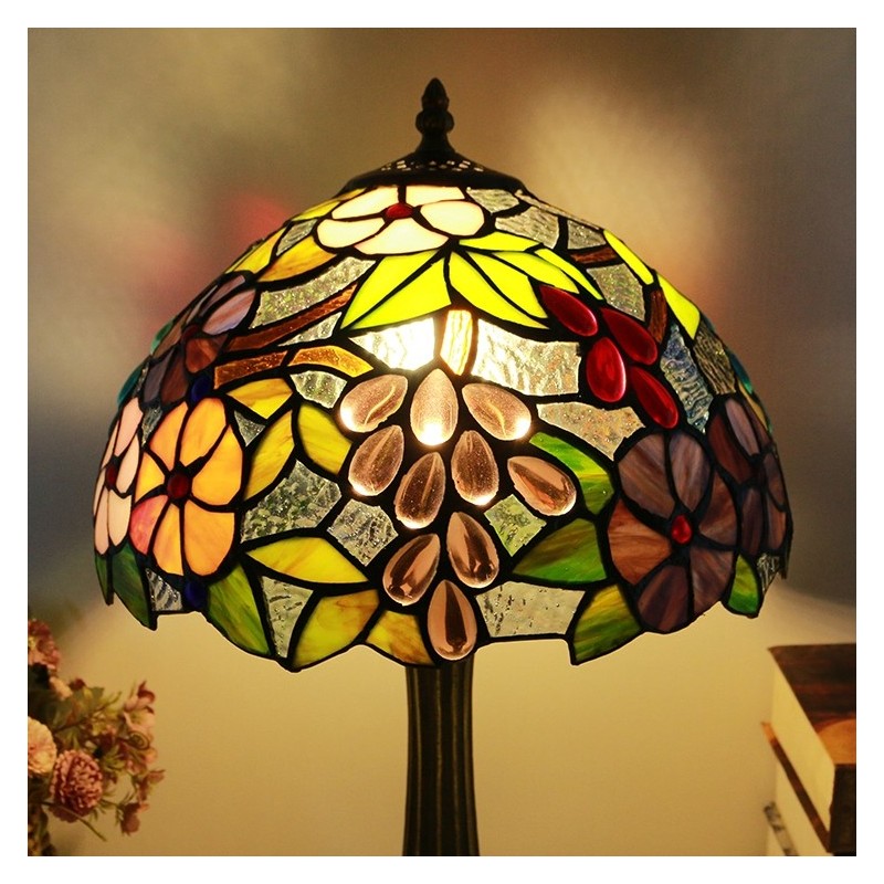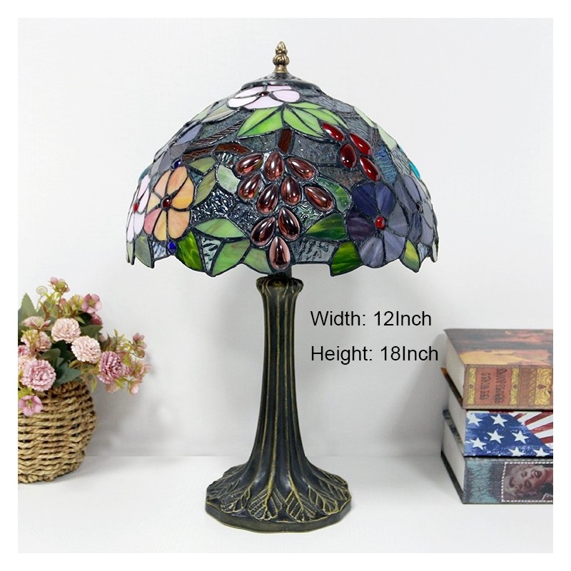 Stolová lampa v štýle Tiffany 12 palcov Vintage hroznové vitráže Lamphade Stôl Light Creative Art Home Decor