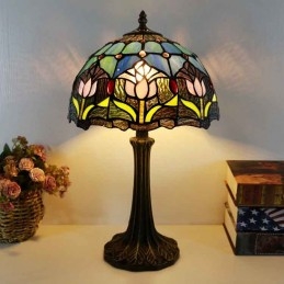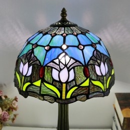Stolová lampa v štýle Tiffany 12 palcová tulipánová vitrážová vitráž Lamfade Stôl Light Creative Art Home Decor