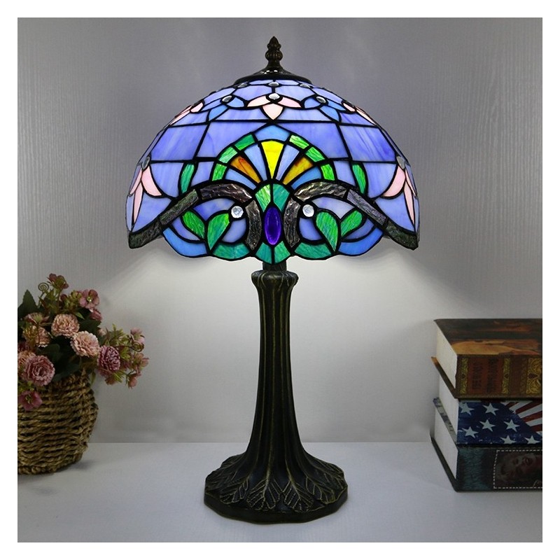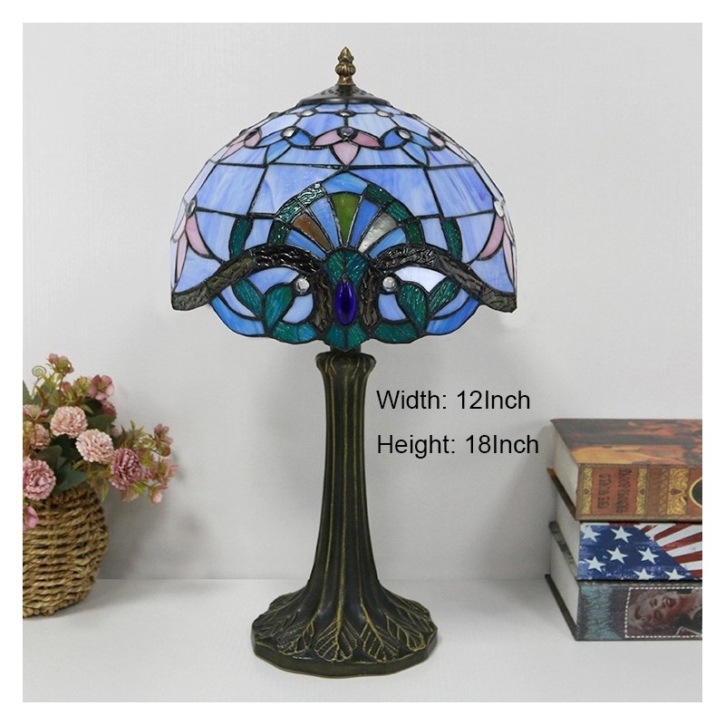 Stolová lampa v štýle Tiffany 12-palcová modrá baroková vitráž Lamfade stolný stôl Light Creative Art Home Decor