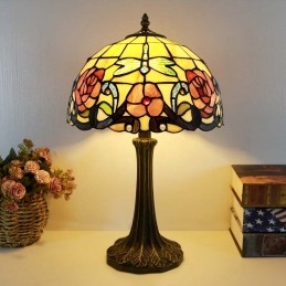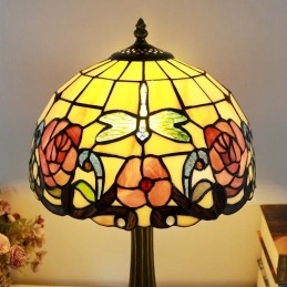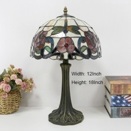 Stolová lampa v štýle Tiffany 12-palcová červená kvetinová vitráž Lamfade Stôl Light Creative Art Home Decor