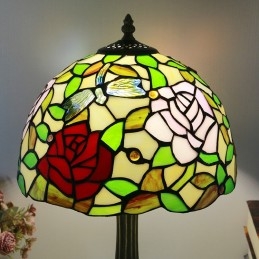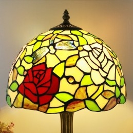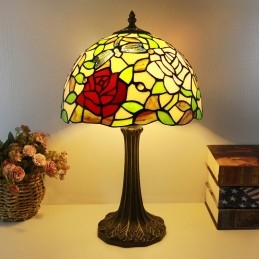 Žltá stolová lampa v štýle Tiffany 12 palcová kvetinová vitráž Lamfade Stôl Svetlo Kreatívne umenie Home Decor