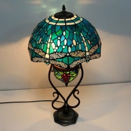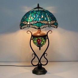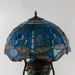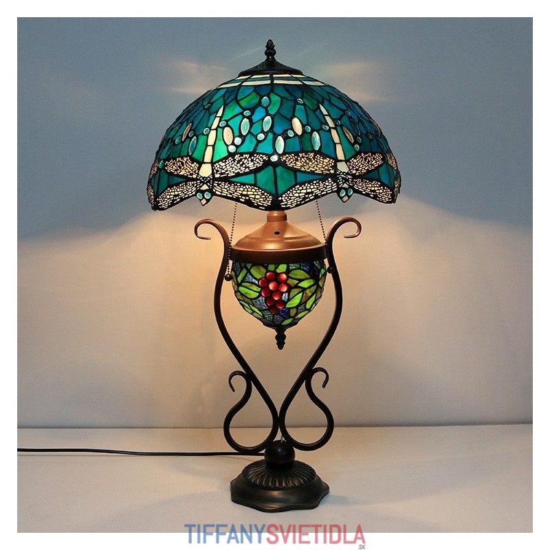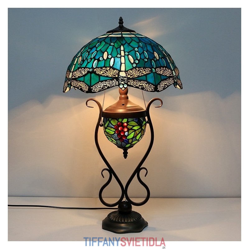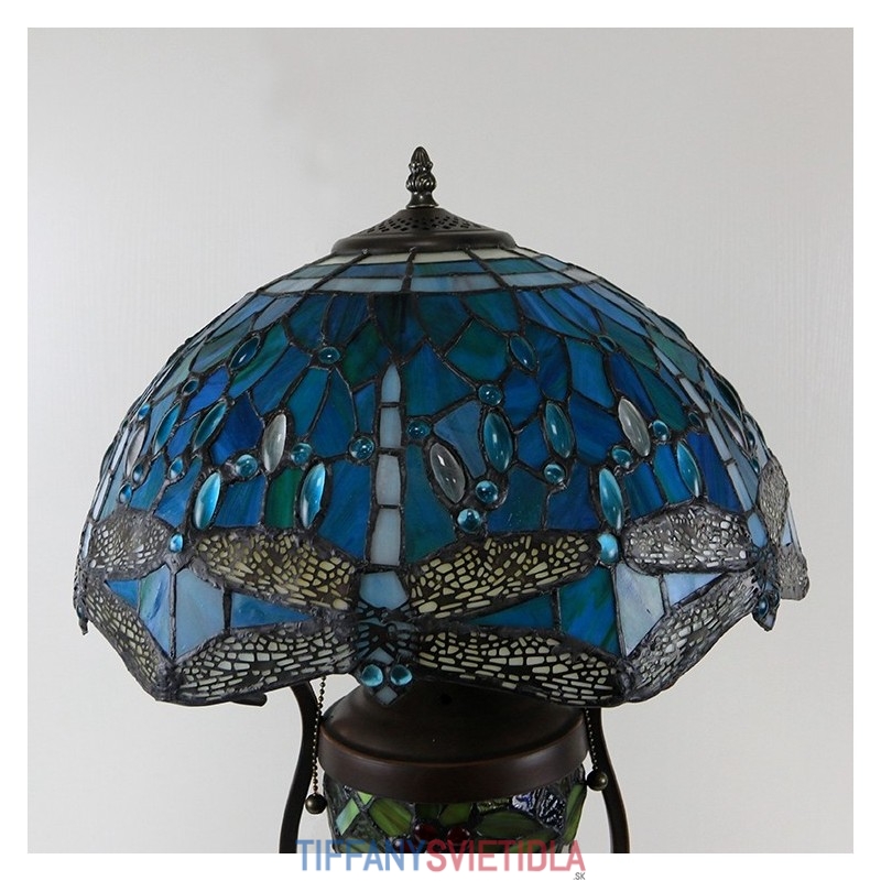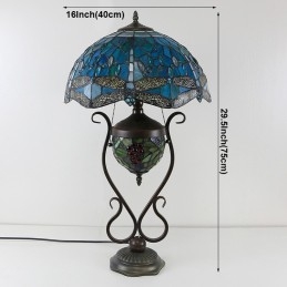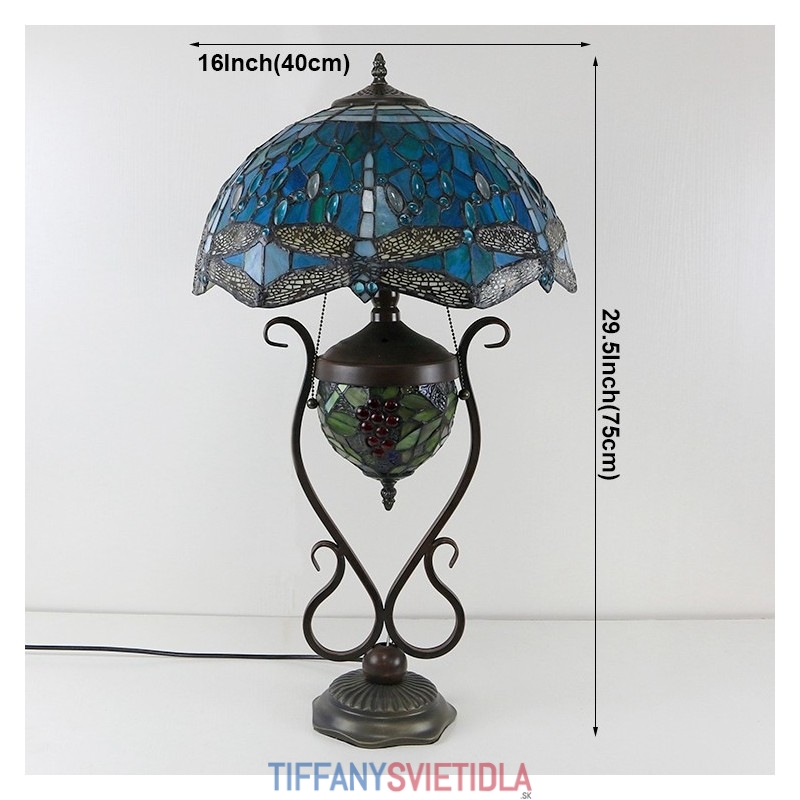 16-palcová modrá vážka v štýle Tiffany stolová lampa z farebného skla s dvojitým osvetlením v spálni s umeleckým osvetlením
