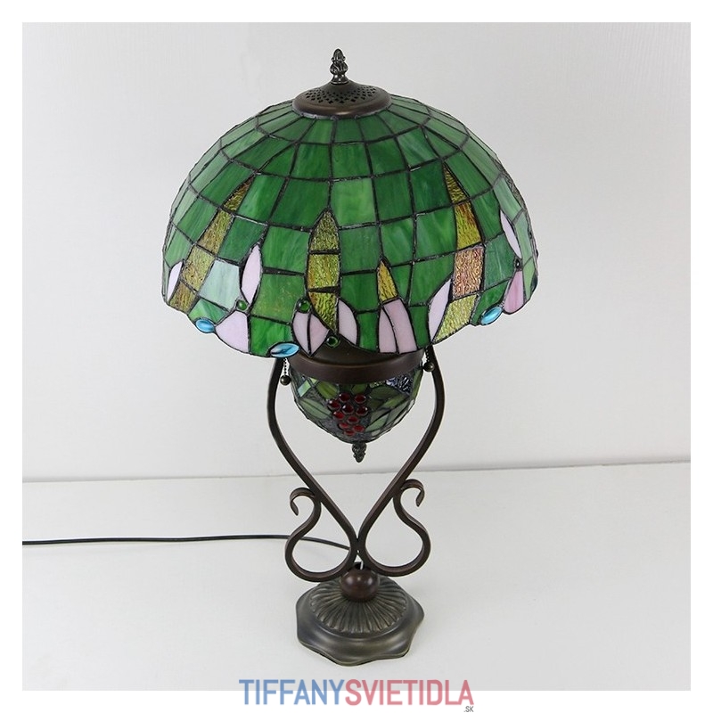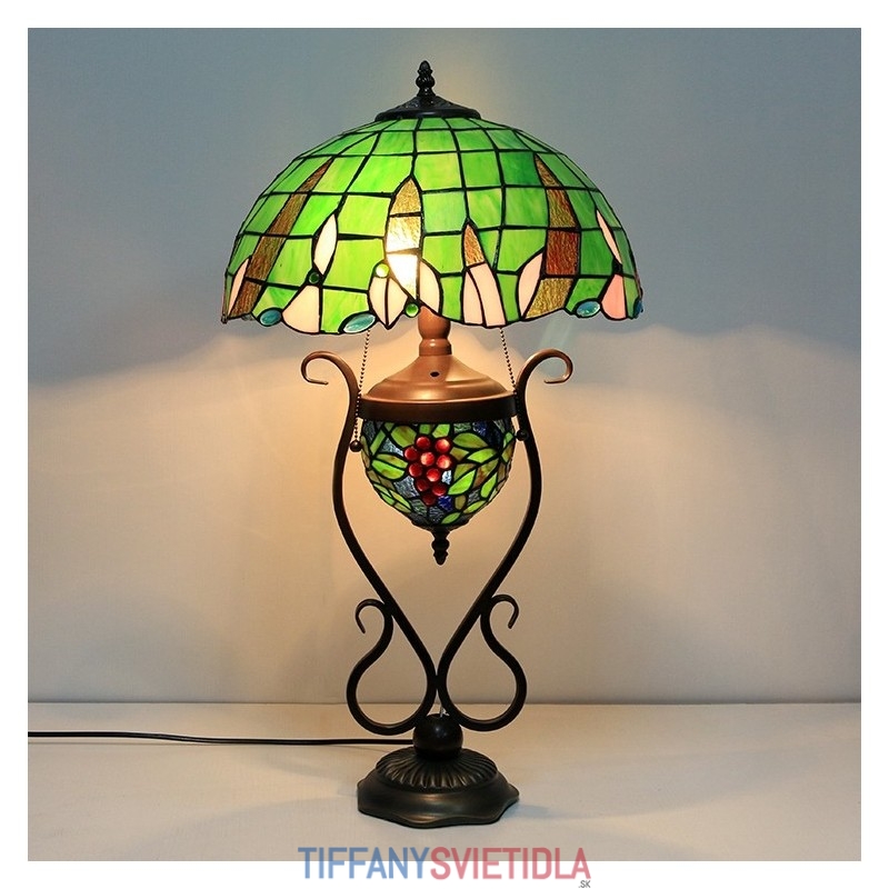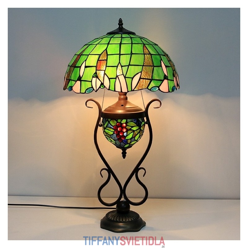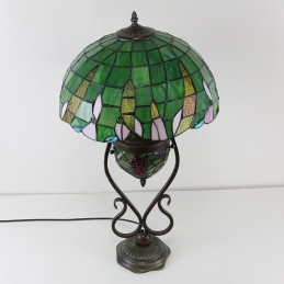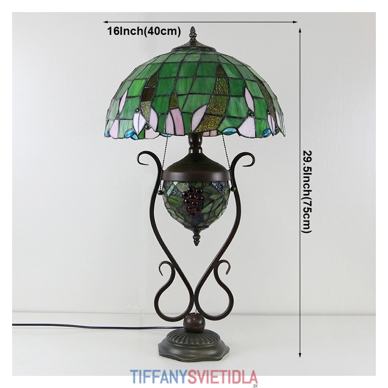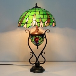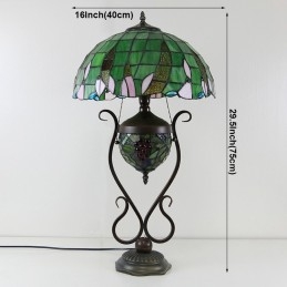 Stolová lampa z farebného skla 16 palcov Es Vintage Green Tiffany Style s dvojitým osvetlením spálne pri nočnom stolíku